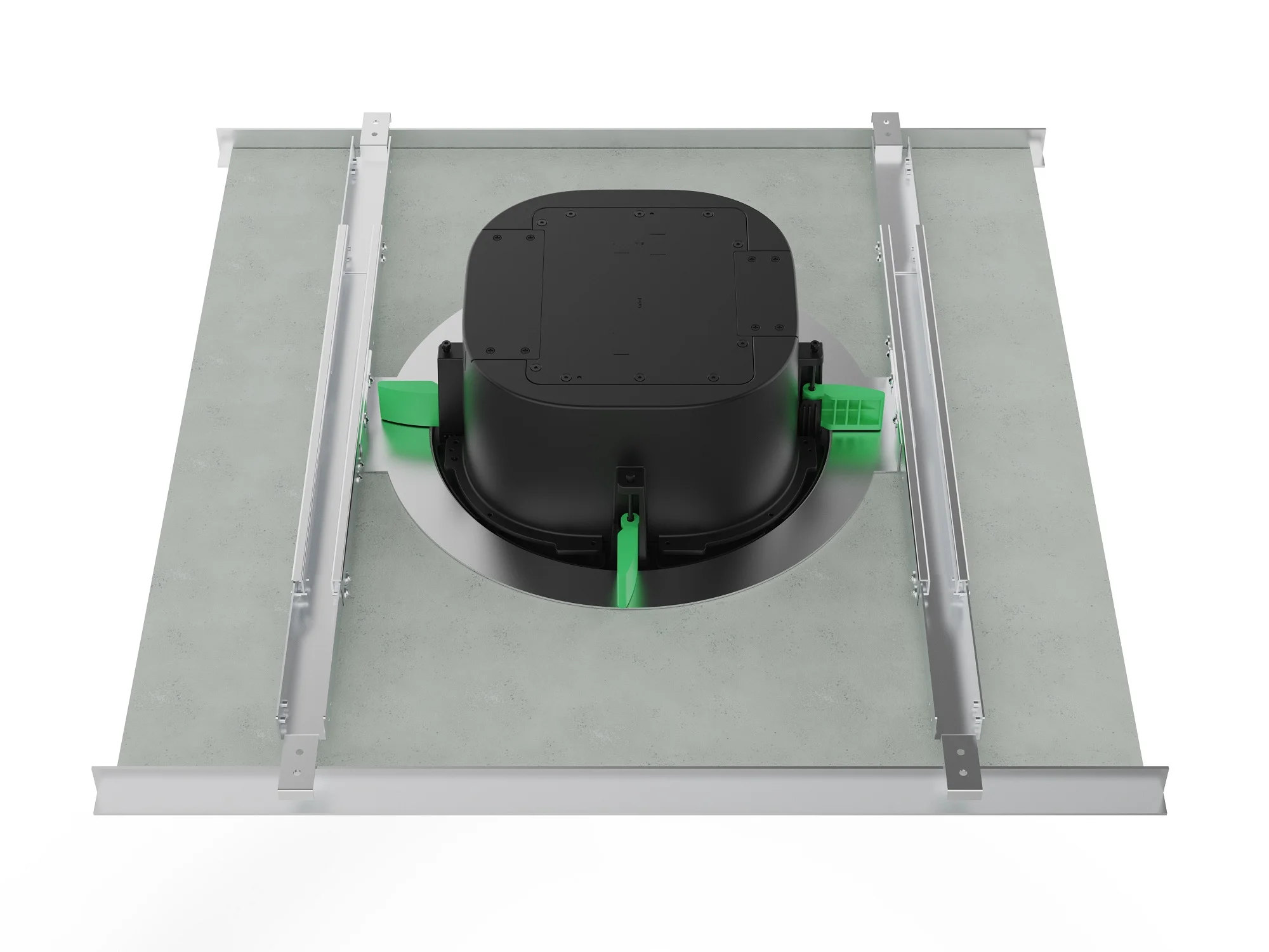 Низкопрофильный (120 мм) громкоговоритель пригоден для установки на большинстве типов подвесных потолков, стильные накладки черного и белого цвета на магните легко снять для очистки или подобрать под требования дизайна интерьера.