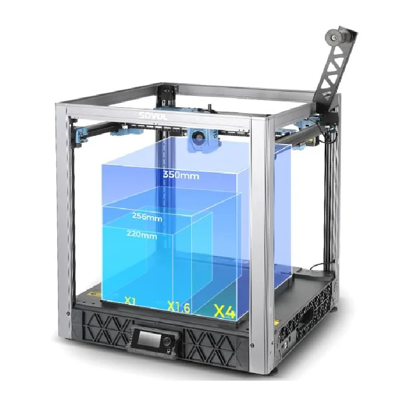 Благодаря большому объёму печати 350x350x345 мм, обширное пространство гарантирует, что творческому процессу не будет тесно. Эта свобода позволяет в полной мере выражать свои творческие идеи, не ограничиваясь небольшими объёмами печати.