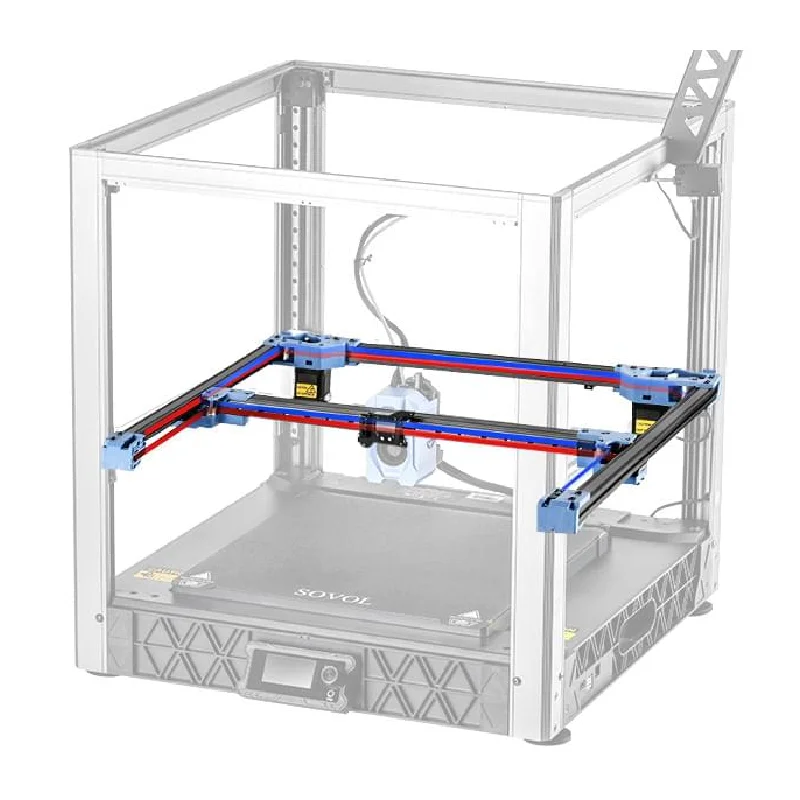 В SV08 используются линейные направляющие для всех 7 осей (4Z + 2Y + 1X) для повышения точности и устойчивости к деформации при осевом перемещении. Обеспечение плавного и точного линейного перемещения имеет решающее значение для получения высококачественных отпечатков. Эти направляющие направляют печатающую головку и платформу принтера, обеспечивая точное позиционирование и стабильное, плавное перемещение на протяжении всего процесса печати.