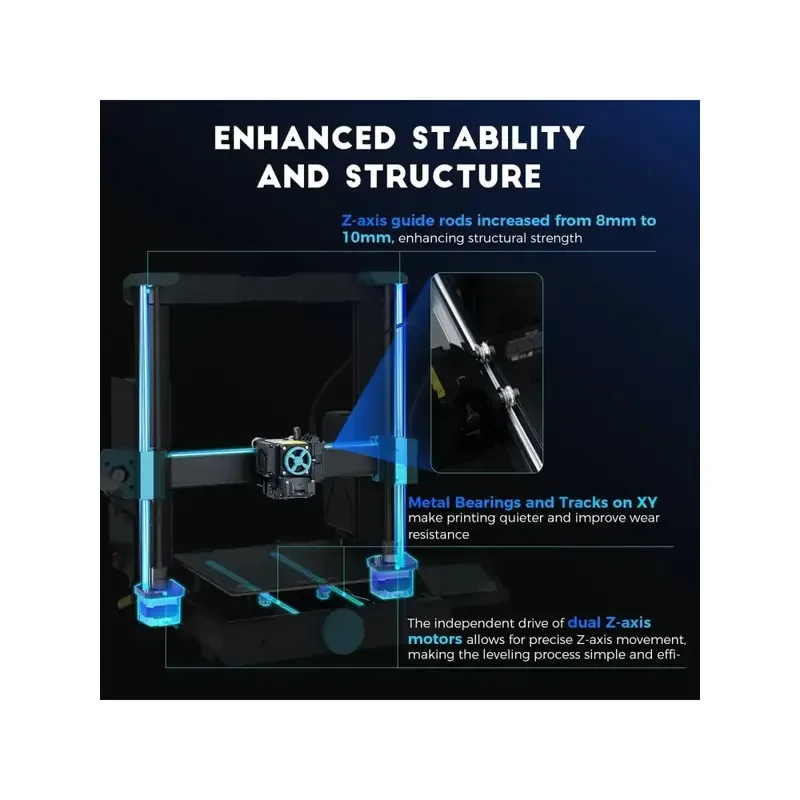 По сравнению с SV06, новый SV06 ACE имеет значительно модернизированную раму. Направляющие стержни оси Z были увеличены с 8 мм до 10 мм, что повысило общую структурную устойчивость. Это улучшение не только обеспечивает более прочную конструкцию , но и приводит к еще более точным и безупречным отпечаткам .