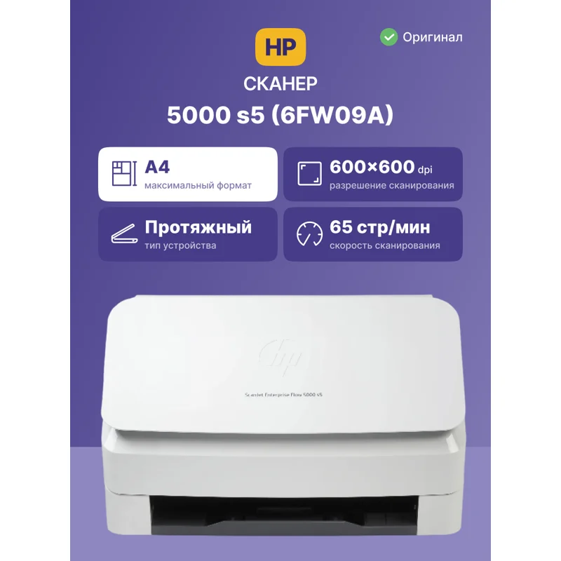 Сканер HP ScanJet Enterprise Flow 5000 s5 (CIS, A4, 600 dpi, USB 3.0, ADF 80 sheets, Duplex, 65 ppm/130 ipm, (replace L2755A))