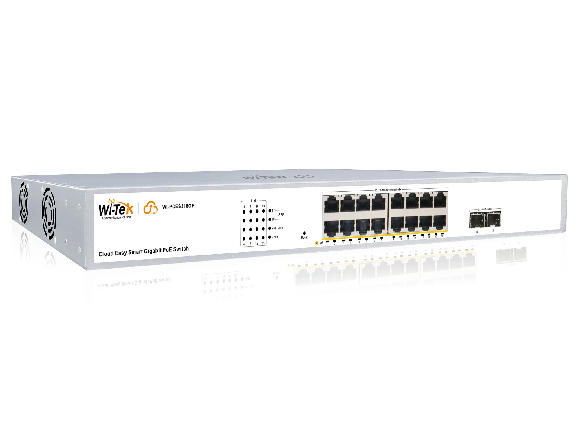 Настраиваемый гигабитный коммутатор WI-PCES318GF v2 серии Easy Smart с функцией PoE с бюджетом 250 Вт предназначен для инсталляции в современных высокоскоростных сетях IP-телефонии, IP-видеонаблюдения, Wi-Fi.