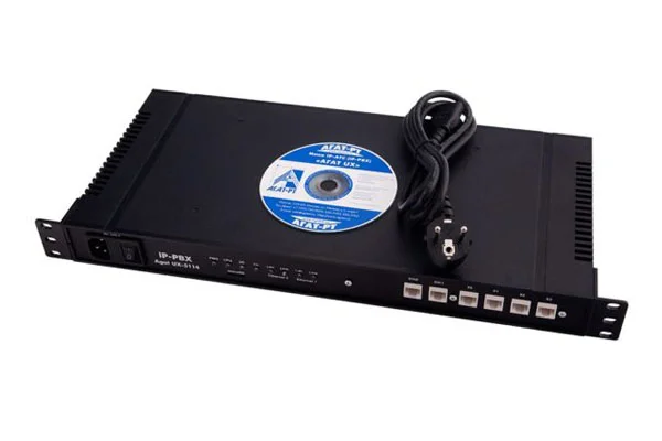 IP-АТС Агат UX для монтажа в стойку 19'' в исполнении 1U поддерживает 30 одновременных VoIP-соединений + подключение цифрового потока Е1 (ISDN PRI) + подключение 64 SIP-абонентов с возможностью расширения до 256 SIP-абонентов.
