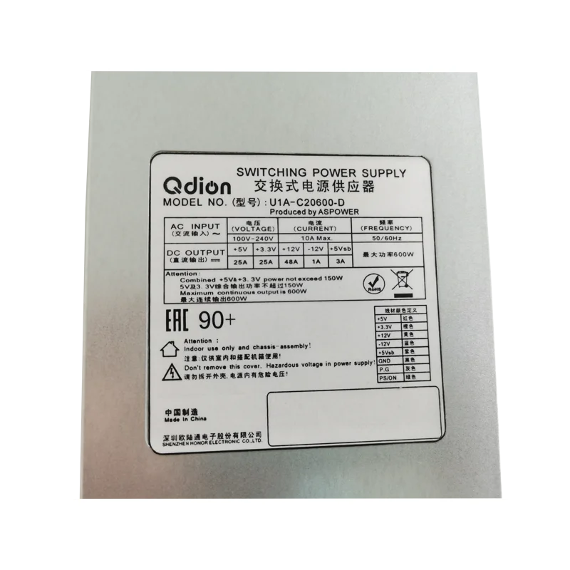 Те же OEM-модели ASPOWER сертифицированы по стандарту 80+, но под торговой маркой Qdion для дистрибуции серверных блоков питания производства ASPOWER через компанию OCS.