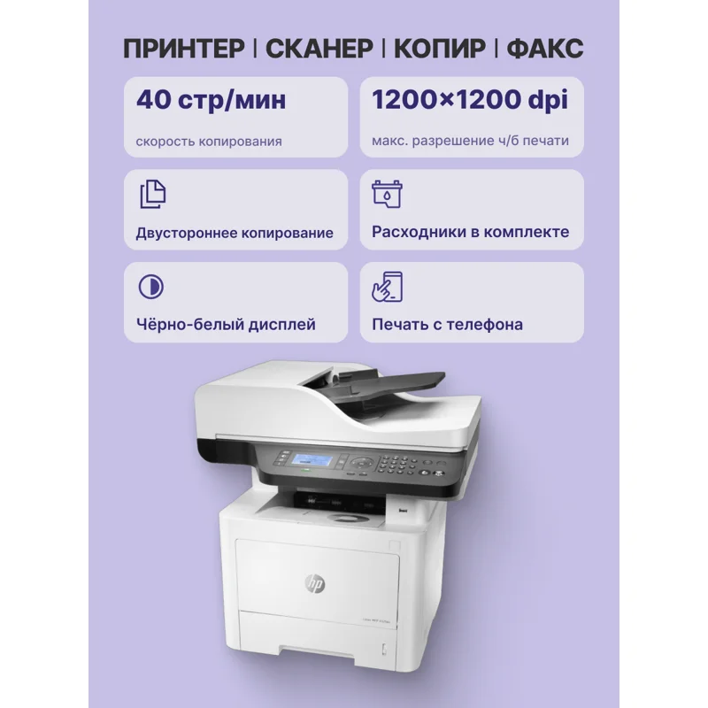 HP Laser 432fdn - быстрое многофункциональное устройство профессионального уровня с низкими эксплуатационными расходами. Принтер с поддержкой динамической безопасности. Предназначен для использования только с картриджами, оснащенными оригинальной микросхемой HP. Картриджи с микросхемами других производителей могут не работать, а работающие в настоящее время могут не работать в будущем. Поддерживайте производительность на стабильно высоком уровне и оставайтесь в плюсе. Это МФУ HP Laser отличается простотой использования, высоким качеством, надежностью и экономичностью. Идеальное решение для бизнеса, которому необходимо простое в использовании многофункциональное устройство для печати, сканирования, копирования и отправки факсом документов и презентаций. Печатайте, сканируйте, копируйте и отправляйте большие документы на плотных носителях факсом, не жертвуя скоростью обработки и печати или качеством результатов. Высокая скорость работы, двусторонняя печать и сканирование и упрощенный интерфейс повышают эффективность бизнеса.