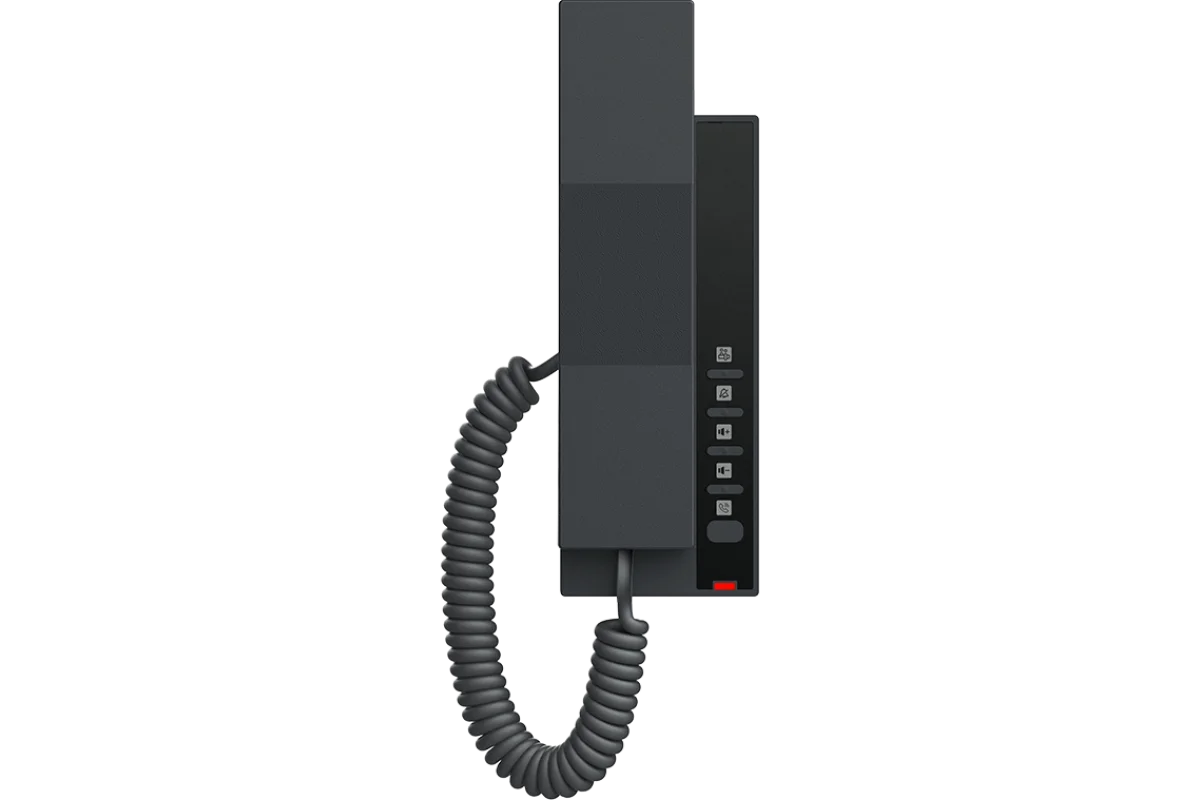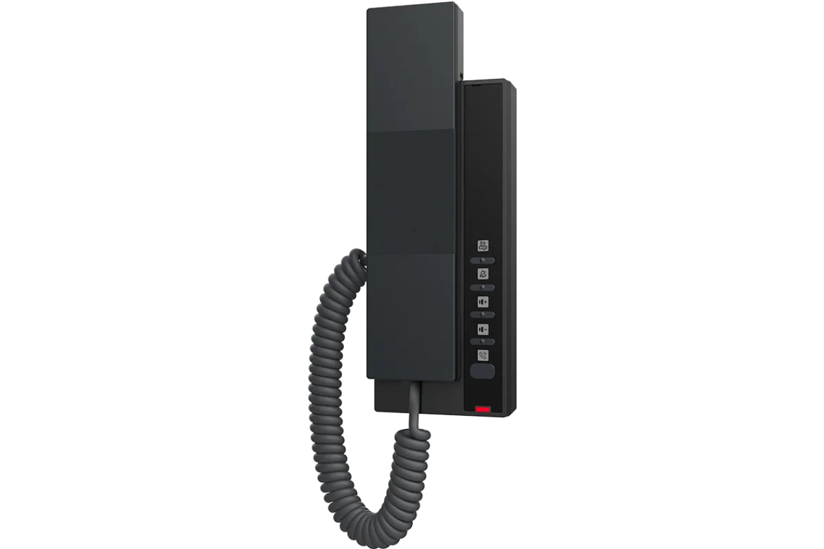H601W — компактный и экономичный IP-телефон без экрана и без полной клавиатуры, предназначенный для использования в отелях. Устройство оснащено 2 программируемыми клавишами и поддерживает широкополосный аудиокодек Opus HD. Встроенный 2-диапазонный модуль Wi-Fi 2,4/5 ГГц и поддержка Wi-Fi 6 обеспечивает более стабильное беспроводное подключение при значительном снижении затрат на развертывание сети в отелях. Компактный форм-фактор минимизирует использование пространства и поддерживает настенный монтаж, что делает IP-телефон пригодным для гибкого применения в различных сценариях. IP-телефоны H601W хорошо подходят для использования в торговых центрах, супермаркетах и аналогичных помещениях, где требуется принимать только входящие вызовы или звонить только на заранее запрограммированные номера (например, SOS или справочная). Передняя панель телефона не кастомизируется.