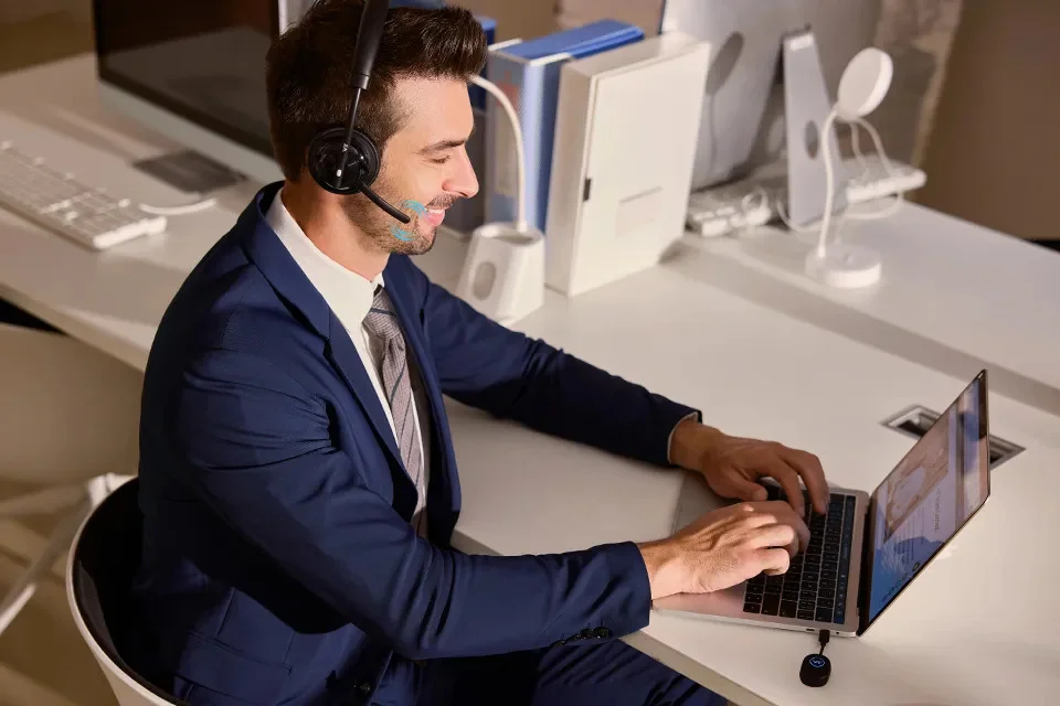 Гарнитура VT W310U-D оснащена многофункциональной клавишей для быстрой обработки вызовов. Имеет функцию шумоподавления микрофона и улучшенную функцию защиты органов слуха с технологией SafeTone. Устройство обеспечивает удаленное управление вызовами на расстоянии до 30 метров от ПК в помещении и до 150 метров вне помещения, а ёмкий аккумулятор позволяет использовать гарнитуру в режиме разговора до 8 часов.
