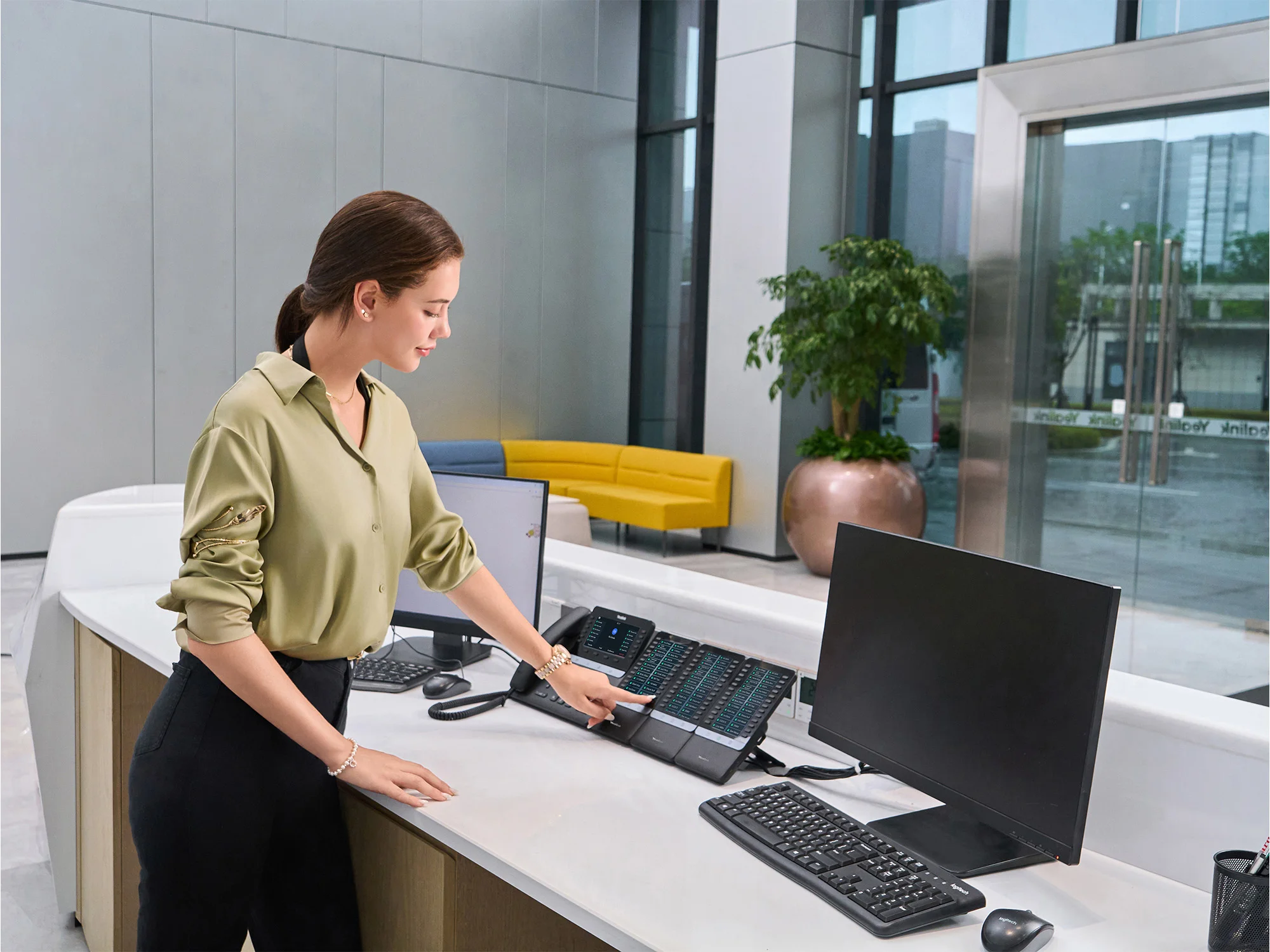 T85W оснащен не только 2 гигабитными сетевыми портами PoE для питания, но и 2 портами USB. T85W поддерживает перелистывание 5 страниц и может включать до 60 программируемых кнопок; кроме того, к телефону можно подключить до 3 модулей расширения EXP55, увеличивая количество программируемых кнопок до 234. Все это экономит рабочее время и средства предприятий, упрощая управление и техническое обслуживание.