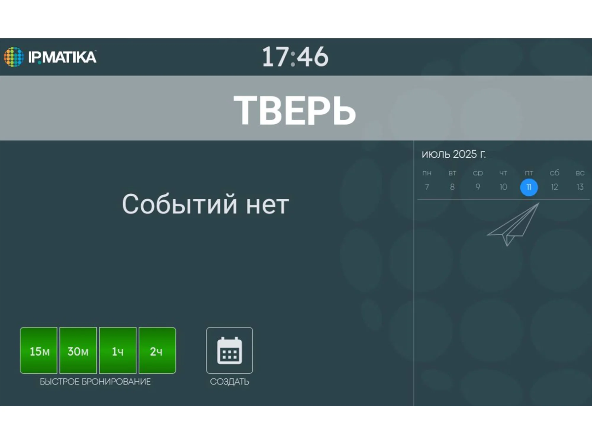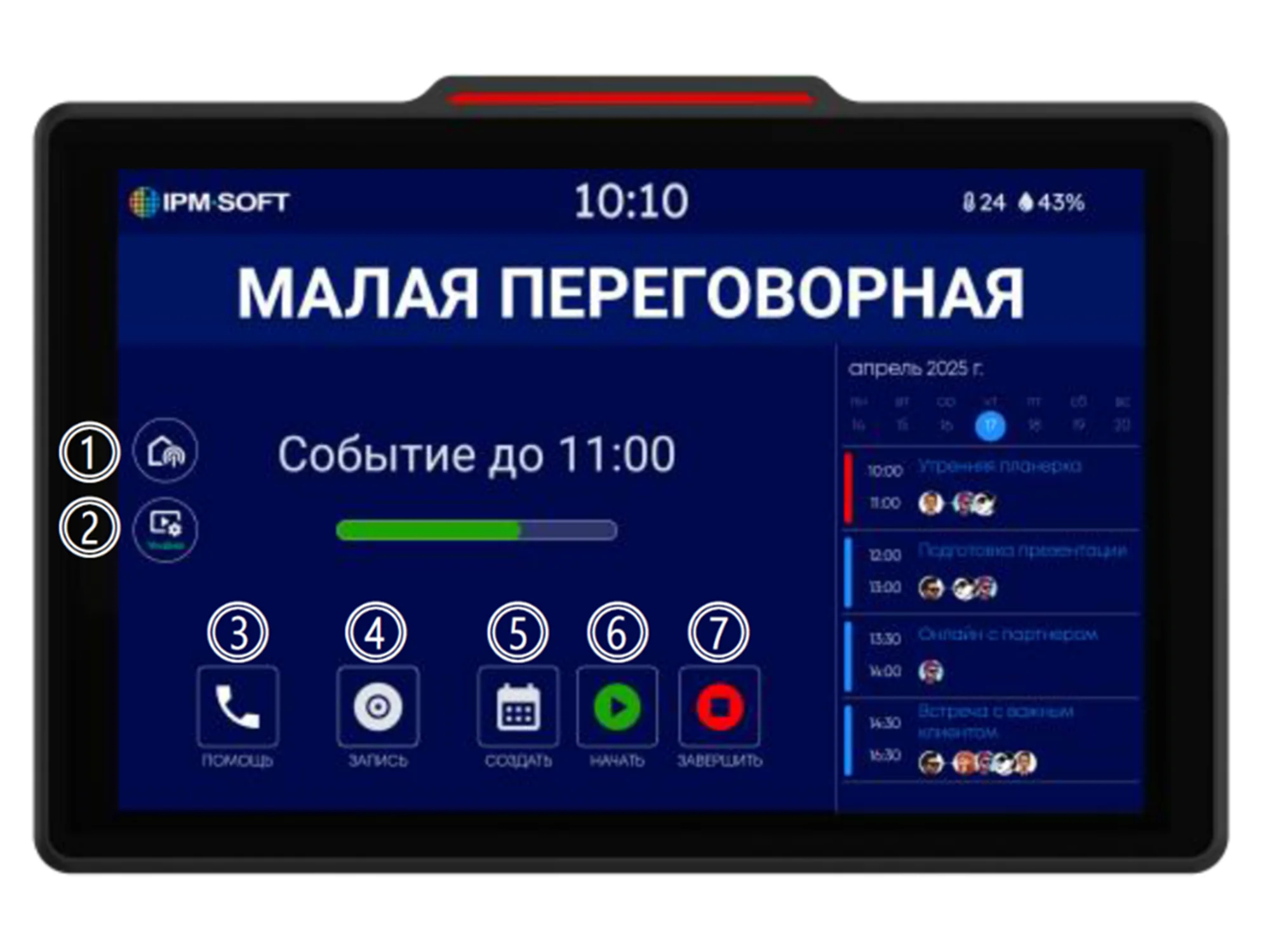отображение аватаров участников, текущего времени, погоды, курса валют, а также температуры воздуха и влажности в переговорной;