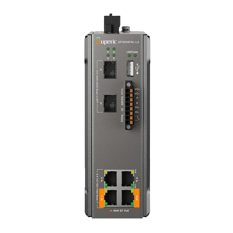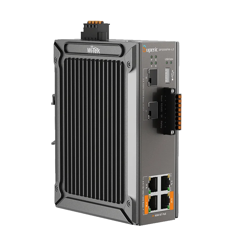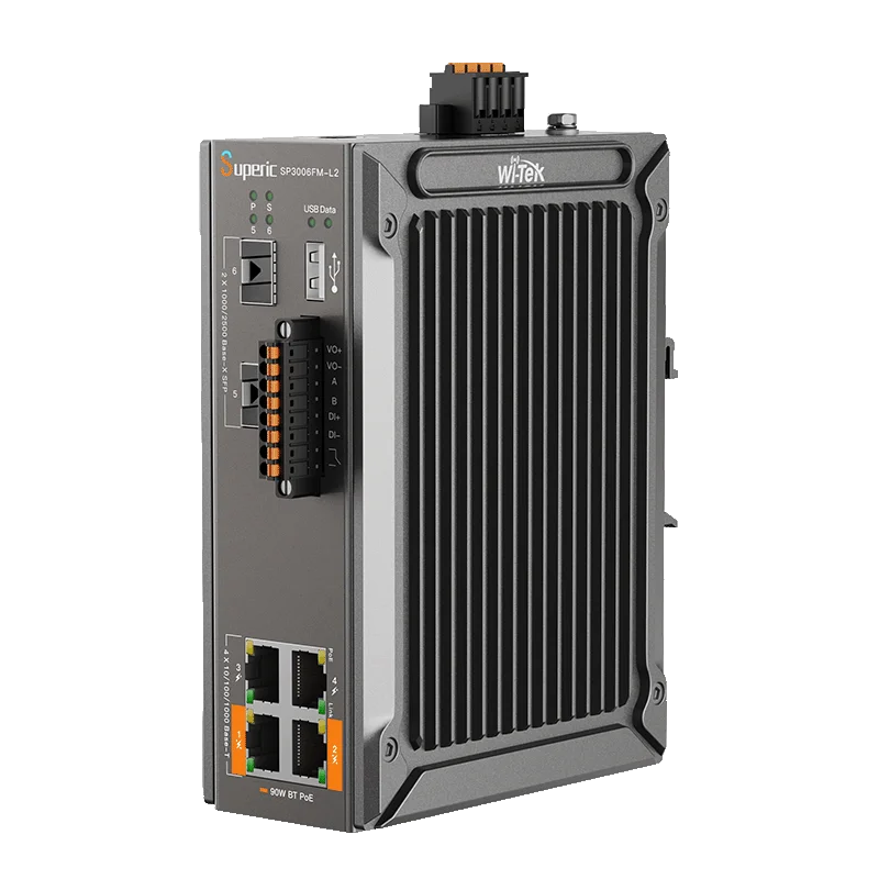 Управляемый промышленный коммутатор Wi-Tek Superic SP3006FM-L2 v3 предназначен для применения в индустриальных сетях предприятий. Коммутатор оснащен 4 портами 10/100/1000Base-Т с поддержкой PoE, из них 2 порта — с поддержкой 802.3af/at, 2 порта — с поддержкой 802.3af/at/bt (Hi-PoE). Коммутатор имеет 2 SFP-порта Uplink со скоростью 2,5 Гбит/с с возможностью агрегации и способностью работать в кольцевых топологиях.
