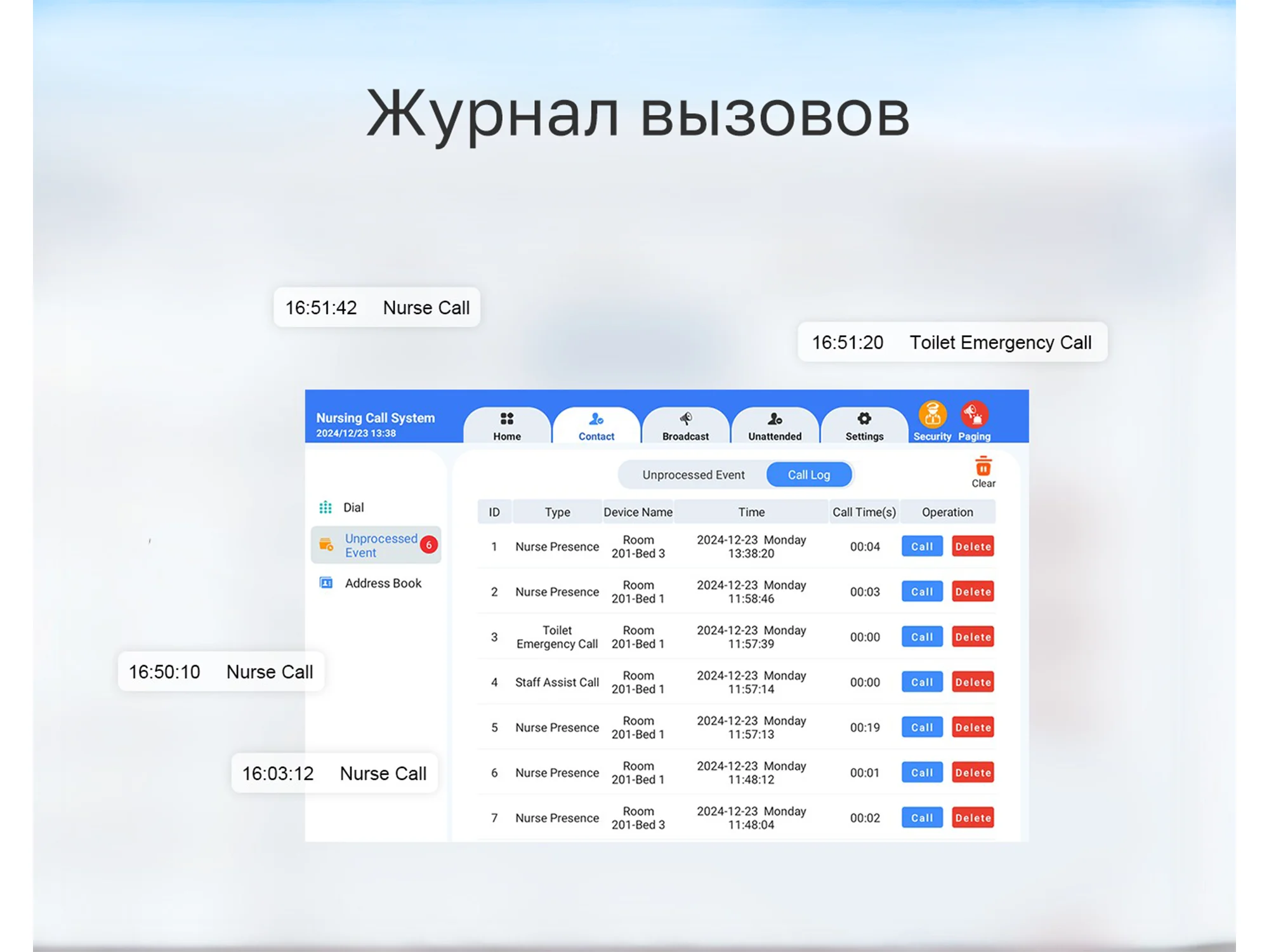 В зависимости от прошивки может работать и как обычный, и как специализированный телефон для медицинских учреждений.