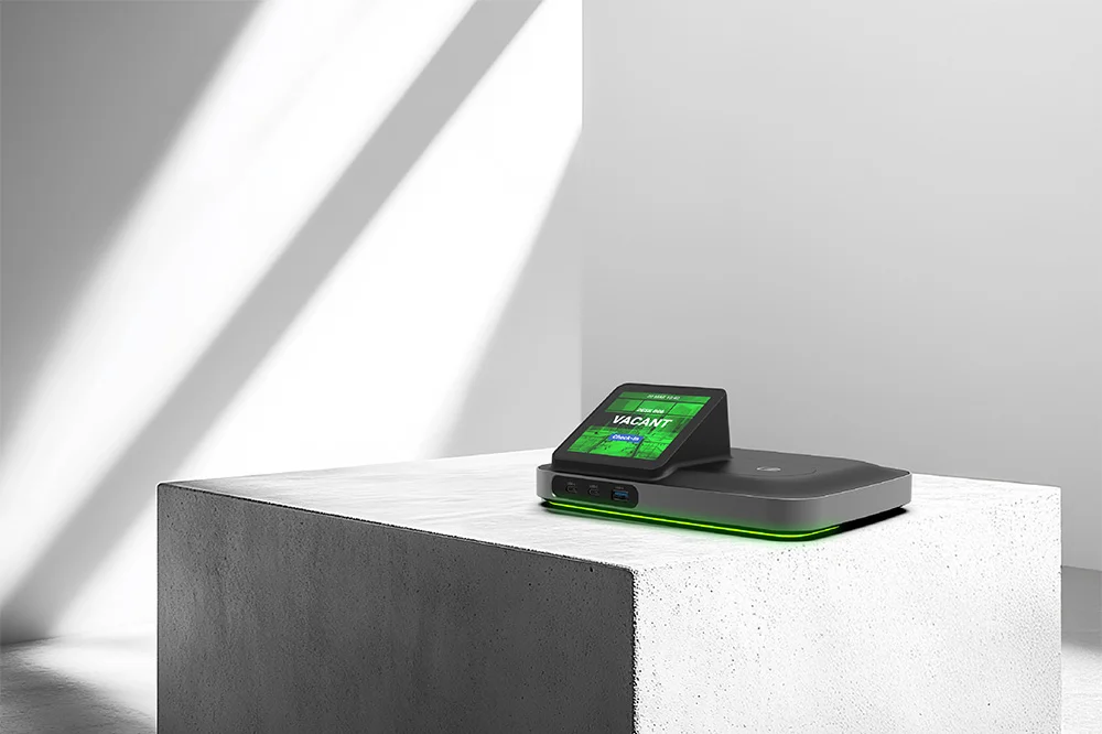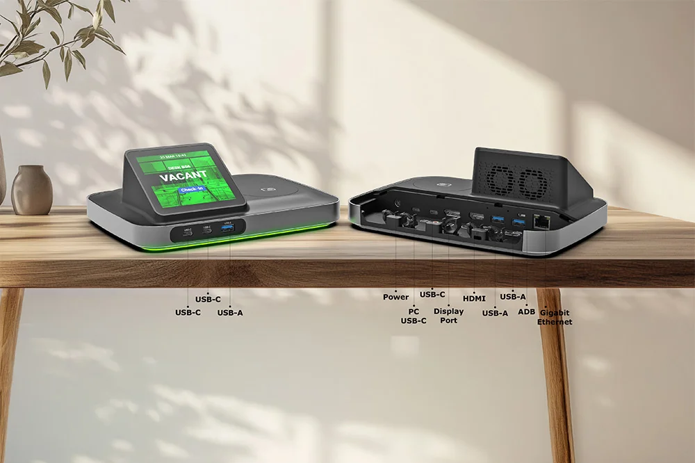 TDD-1000 обеспечит питанием подключенный ноутбук, а также внешние USB-устройства, такие как клавиатуры, камеры и микрофоны, дополнительные мониторы. Устройство оснащено интуитивно понятными световыми индикаторами доступности для резервирования рабочего места, а также ярким IPS-дисплеем 3,9” с высоким разрешением.