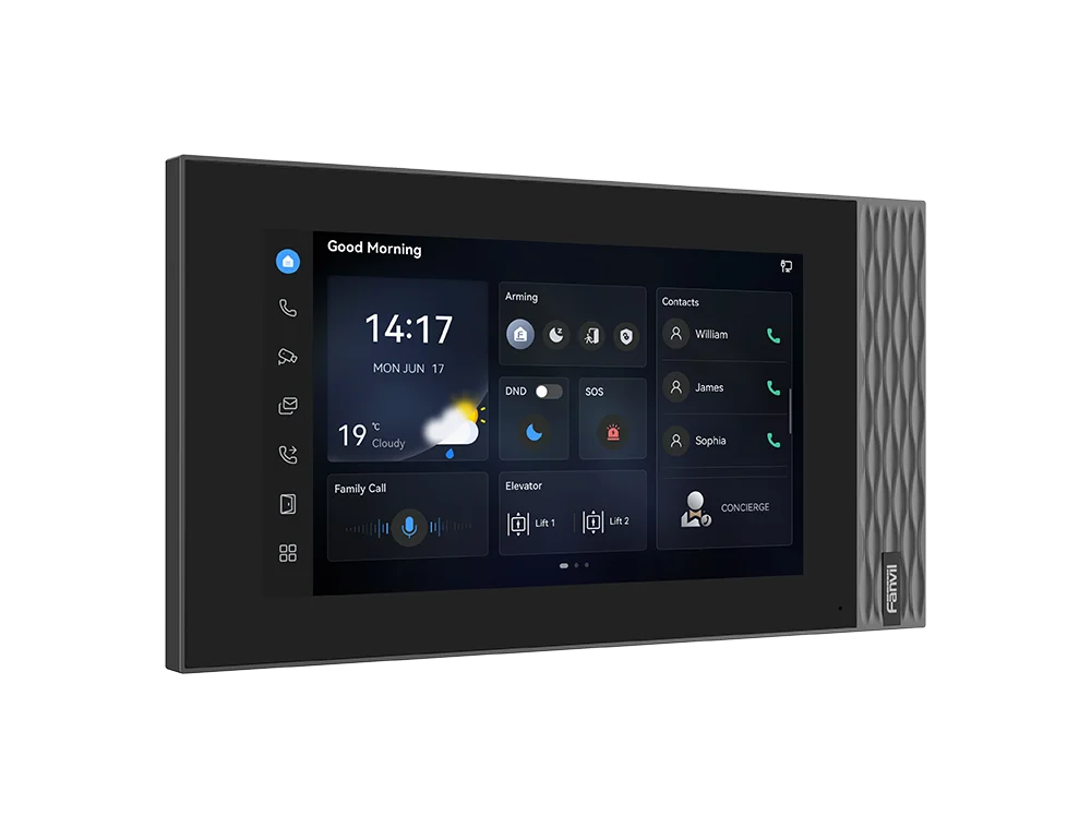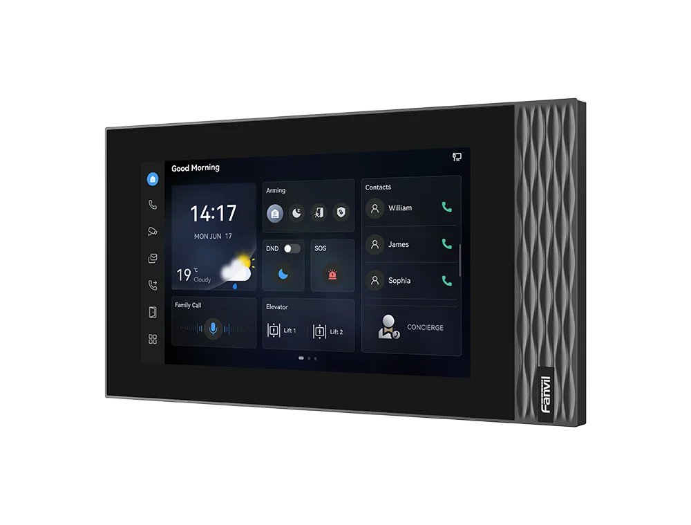 Fanvil i554W — новая ответная IP-видеопанель с ОС Linux, оснащенная цветным сенсорным экраном 7'' (1024 х 600 пикселей) и поддержкой подключения по Wi-Fi. Интуитивно понятный интерфейс позволяет пользователям без особых усилий управлять вызовами, наблюдать за посетителями и отпирать двери. Разработанное для простоты установки и эксплуатации, устройство является идеальным выбором для жилых комплексов и малого бизнеса. Динамик мощностью 2 Вт позволяет услышать звонок и голос посетителя даже из другой комнаты.