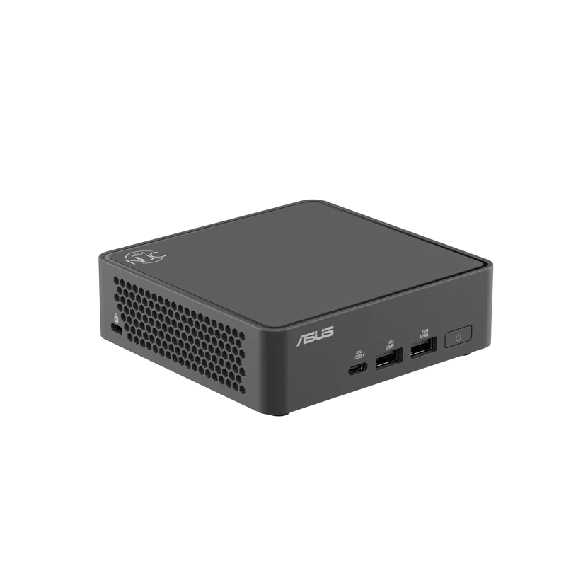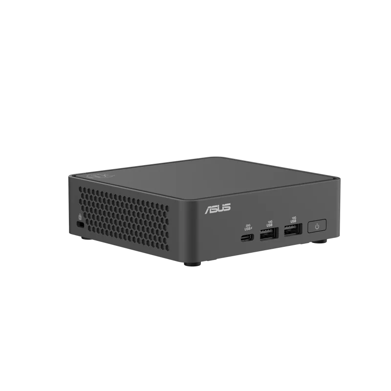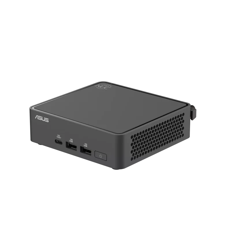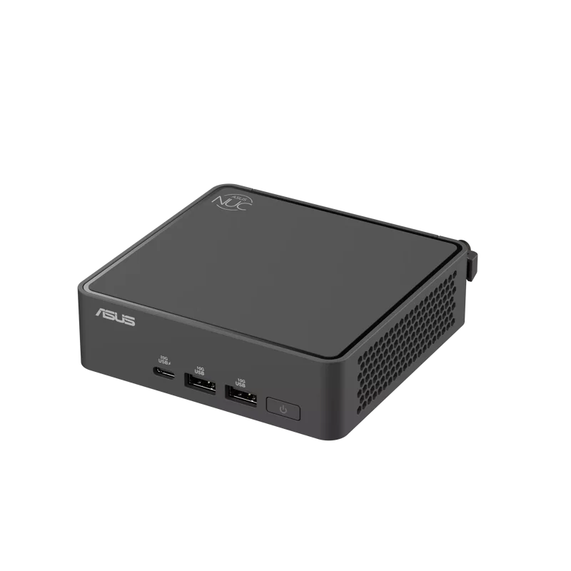 ASUS NUC 15CRK представляет собой компактное компьютерное решение в формате неттопа, сочетающее в себе высокую производительность и минималистичный дизайн. Устройство поставляется в черном цвете с фирменным логотипом ASUS, что делает его стильным дополнением любого рабочего пространства.