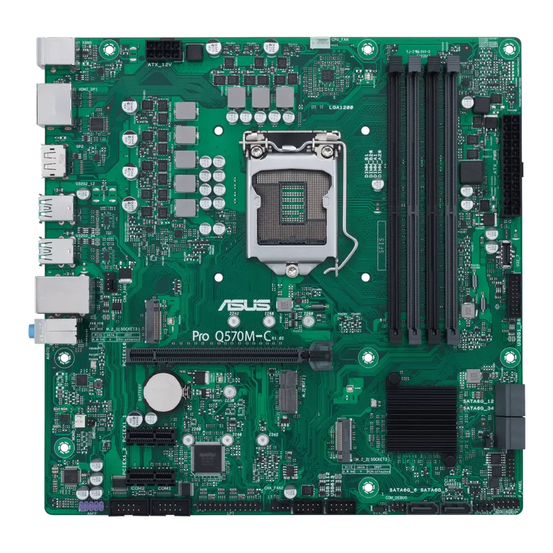 Asus PRO Q570M-C/CSM - это компактная и надежная материнская плата, разработанная специально для бизнес-приложений и рабочих станций. Она обладает небольшим размером, удобным набором функций и продуманной конструкцией, что делает ее идеальным выбором для компактных сборок и систем, требующих стабильности и надежности. Ключевые характеристики: • Размер: 244x244 мм. Компактный формат Micro-ATX делает ее идеальной для малых корпусов. • Память: 4 слота DDR4. Обеспечивает стабильную работу и высокую производительность с поддержкой оперативной памяти с разными частотами. • Разъемы: Широкий набор разъемов для подключения всех необходимых устройств. • Отладочный заголовок Asus COM: Позволяет легко устранять неполадки и диагностировать систему. • Влагостойкое покрытие: Защищает материнскую плату от влаги и пыли, что увеличивает ее срок службы. Преимущества: • Компактность: Идеально подходит для малых корпусов и систем с ограниченным пространством. • Надежность: Влагостойкое покрытие и прочная конструкция обеспечивают долговечность и стабильность.