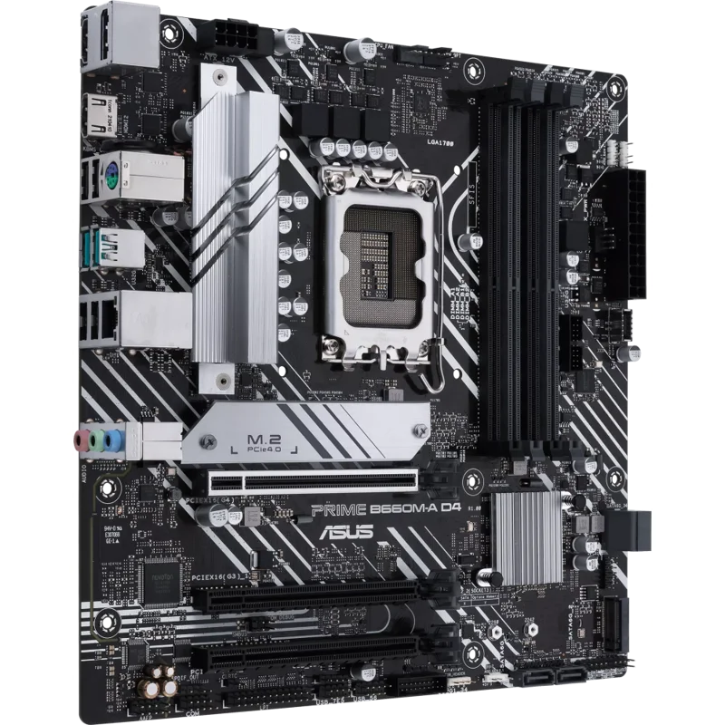 Материнская плата ASUS PRIME B660M-A D4-CSM ориентирована на построение компьютерной инфраструктуры в офисной и корпоративной сферах деятельности. Она оснащена чипсетом Intel B660 с поддержкой процессорного разъема LGA 1700. Для подключения оперативной памяти объемом до 128 ГБ есть 4 слота DIMM DDR4. Установить дискретную графику можно с помощью 3 слотов PCI-E x16. Накопители HDD/SSD подключаются к платформе посредством 2 разъемов M.2 и 4 слотов SATA. В плате ASUS PRIME B660M-A D4-CSM реализован сетевой адаптер Ethernet со скоростью 1 Гбит/с для проводного доступа к Интернету. На панели ввода/вывода расположены порты USB, видеовыходы DisplayPort и HDMI, коннекторы аудио. Для централизованного управления и администрирования предусмотрено программное обеспечение ASUS Control Center Express, которое предлагает средства мониторинга и информационной безопасности.