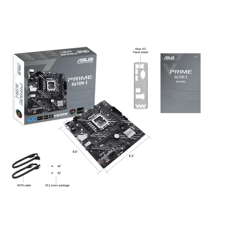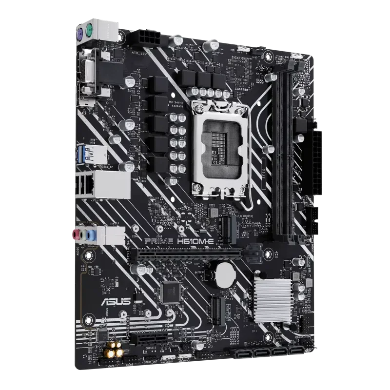 ASUS Prime H610M-E-CSM, материнская плата Intel H610 (LGA 1700) mATX с DDR5, PCIe 4.0, двумя слотами M.2, Realtek 1 Gb Ethernet, DisplayPort, HDMI, VGA, портами USB 3.2 Gen 1, SATA 6 Гбит/с, COM-заголовок, Aura Sync