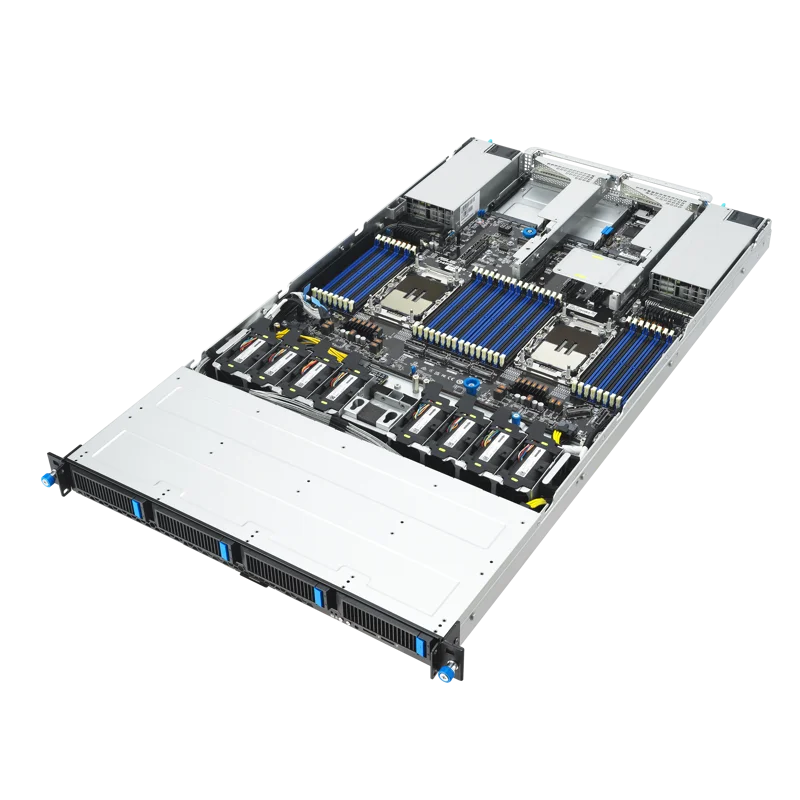 Серверная платформа ASUS RS700-E12-RS4U представляет собой мощное решение формата 1U, идеально подходящее для центров обработки данных и высокопроизводительных вычислений. В сердце ASUS RS700-E12-RS4U находятся два разъема LGA 4710, совместимые с процессорами Intel Xeon 6-го поколения. Эта архитектура гарантирует выдающуюся многопоточную производительность, что особенно важно для задач, требующих высокой вычислительной мощности.