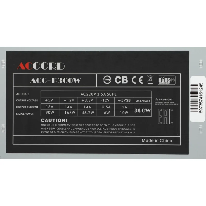 Accord ATX 300W ACC-P300W (20+4pin) 80mm fan 3xSATA