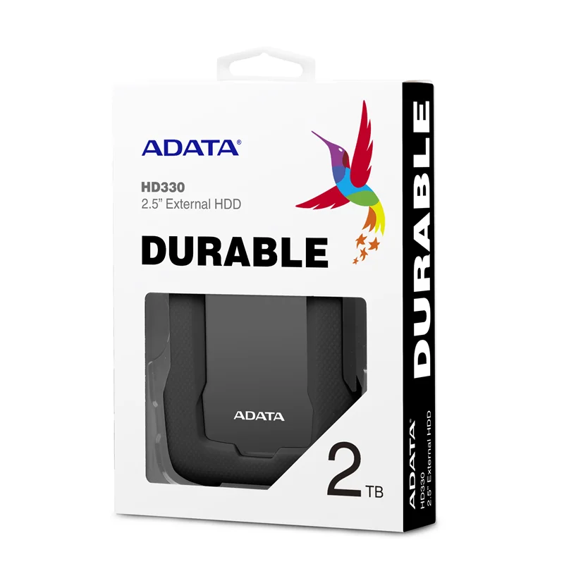 Внешний жесткий диск HD330 компании ADATA обеспечивает сохранность ваших данных за счет использования силиконового чехла снаружи, а также запатентованных вибродатчиков ADATA и программного обеспечения HDDtoGO с AES-256-битным шифрованием внутри. Однако, несмотря на свою прочность, HD330 отличается тонким форм-фактором в 16,2 мм, поэтому на него приятно смотреть и удобно переносить. Высота моделей HD330 емкостью 1 и 2 ТБ составляет 16,2 мм, а моделей емкостью 4 и 5 ТБ - 23,4 мм. Прочная внешняя защита Прочная защита HD330 начинается снаружи - с долговечного, амортизирующего силиконового чехла, способного выдержать удары, падения и все жизненные невзгоды. Три варианта цвета HD330 выпускается в трех цветовых решениях - черном, красном и синем. Выберите оттенок, лучше всего отражающий ваш характер. Больше памяти для резервирования данных В наш век видеоконтента высокой четкости слишком много памяти не бывает. Благодаря большой емкости, с HD330 вы всегда защищены и готовы к резервному копированию всех песен, фильмов, фотографий и другой информации. Полная защита от ошибок и повреждений секторов Очень немногие жесткие диски продолжают работать даже после падения или ударов, в результате которых появляются ошибки и поврежденные сектора. Благодаря запатентованным вибродатчикам ADATA, вся работа диска прекращается в случае обнаружения механических ударов. Работа возобновляется, как только минует угроза. Пользователь получает полную информацию с помощью четкого индикатора состояния.