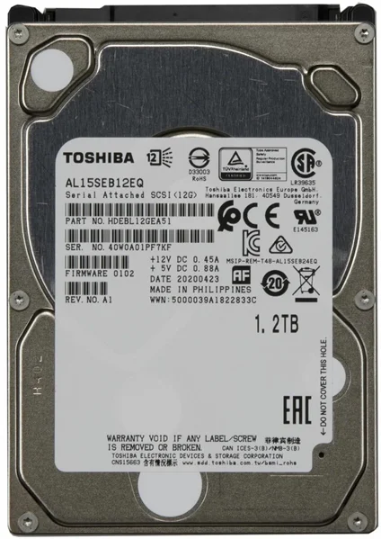 Жесткий диск Toshiba Enterprise HDD 2.5" SAS 1.2Tb (1200Gb), 10000rpm, 128MB buffer, 512e, AL15SEB12EQ, 1 year