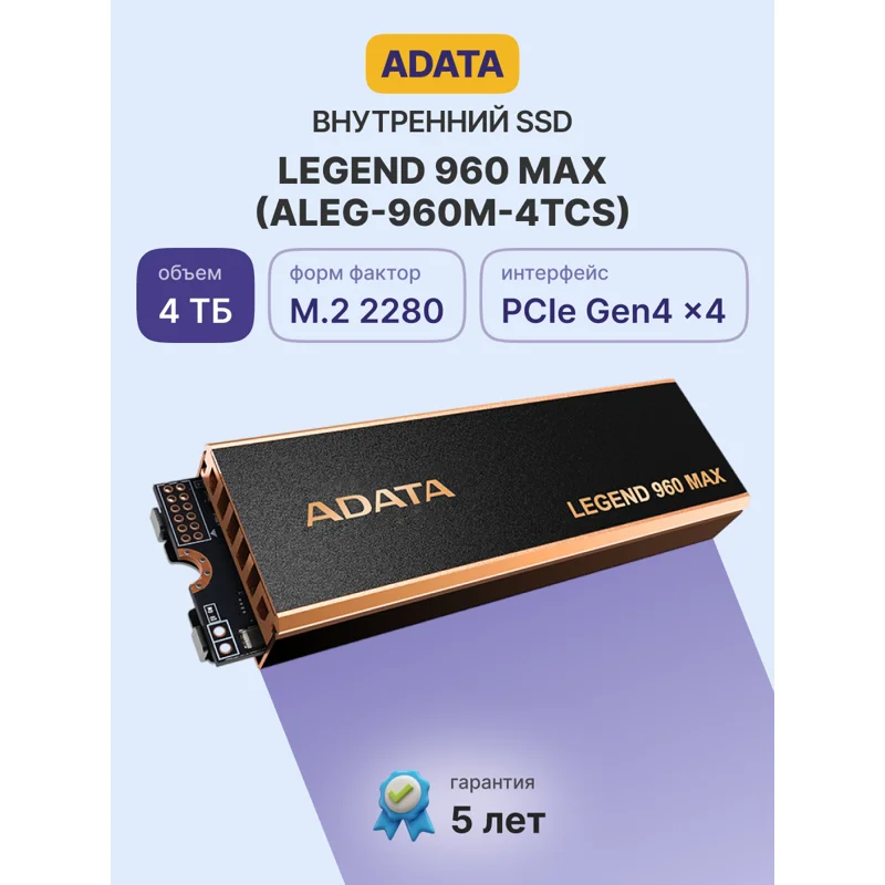 PCIe Gen4 x4 ● Макс. скорость чтения/записи: 7 400/6 800 МБ/с ● Емкость: До 4 ТБ ● Радиатор обеспечивает эффективное охлаждение ● Поддержка последних платформ Intel и AMD ● Работает с PS5 для расширения памяти ● Гарантия сроком на 5 лет