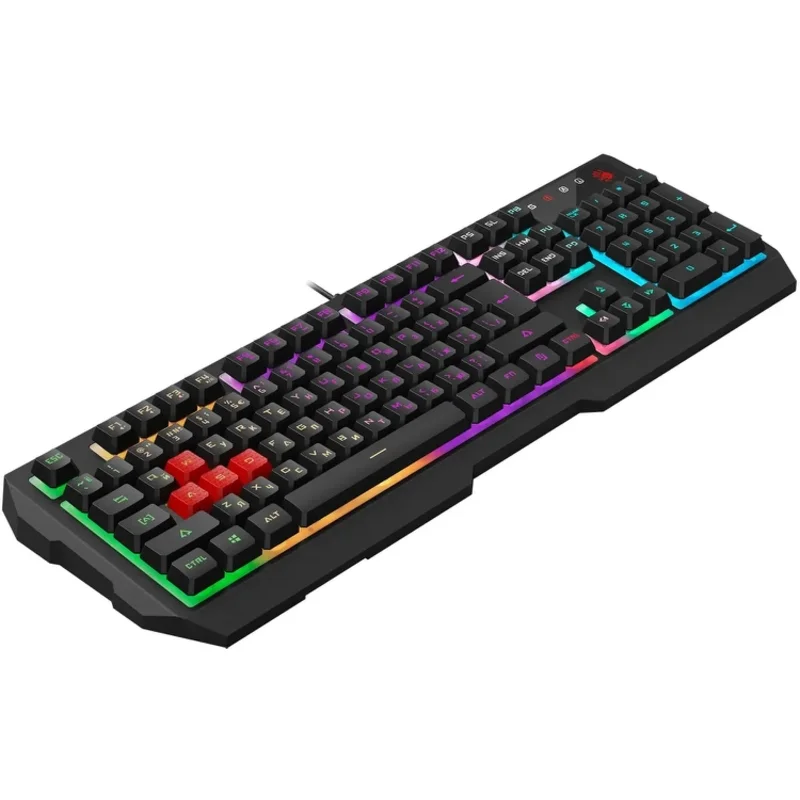 A4Tech Bloody B140N — это проводная клавиатура мембранного типа, созданная для пользователей, которые ищут универсальное решение для дома или офиса. Модель сочетает в себе классическую эргономику полноразмерного корпуса и современные визуальные эффекты, что делает ее одинаково комфортным инструментом как для набора текста, так и для динамичных игровых сессий.