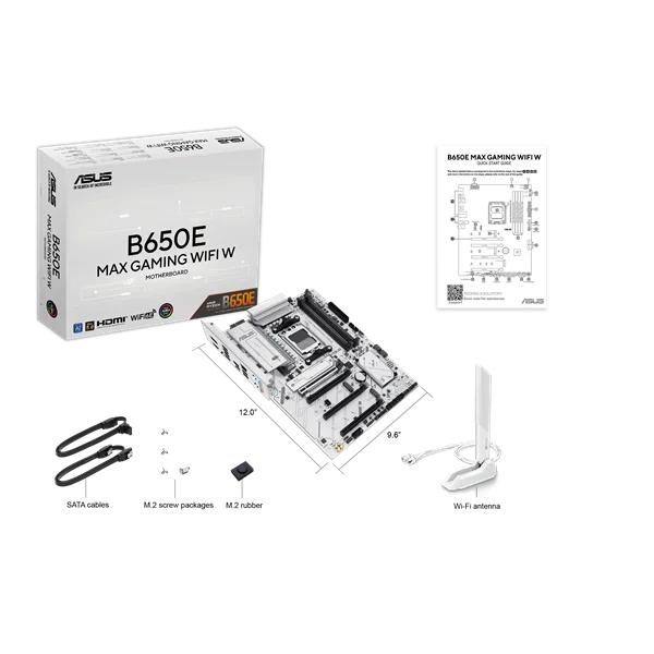 Материнская плата ASUS B650E MAX GAMING WIFI W, AM5, B650, 4*DDR5, 4*SATA, 3*M.2, 5*USB 3.2, 2*USB 2.0, Type-C, 5*PCIx16, DP+HDMI, ATX