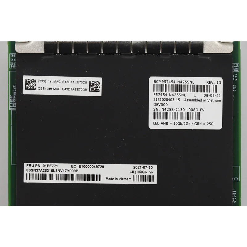 Broadcom BCM957454-N425SNL, также известная как Broadcom NetXtreme E-Series N425G, представляет собой четырехпортовую высокоскоростную сетевую карту формата PCI Express 4.0 x16, предназначенную для серверных решений в рамках стандарта Open Compute Project (OCP) версии 3.0. Устройство оснащено четырьмя разъемами SFP28, позволяющими подключать оптические модули и медные кабели прямого подключения. Каждый порт обеспечивает пропускную способность до 25 Гбит/с. Эта карта поддерживает новейшие стандарты передачи данных, включая протоколы виртуализации сетей, такие как VXLAN, NVGRE, Geneve и GRE. Надежность и безопасность Данная сетевая карта оснащена технологией BroadSAFE, обеспечивающей защиту от несанкционированного доступа и нарушений целостности данных. Она соответствует отраслевым стандартам безопасности и надежности оборудования, обеспечивая максимальную защищенность критически важных корпоративных ресурсов. Расширенная поддержка виртуализации Поддерживая до 1000 виртуальных функций (VF) благодаря технологии SR-IOV, карта позволяет эффективно распределять нагрузку и выделять вычислительные мощности каждому отдельному хосту или виртуальной машине. Эффективная обработка трафика Сетевая карта обладает рядом уникальных технологий обработки пакетов, среди которых технология TruFlow, обеспечивающая ускорение обработки потока данных. Это значительно снижает нагрузку на центральный процессор сервера и повышает общую производительность системы. Совместимость и масштабируемость Устройство совместимо с широким спектром операционных систем и гипервизоров, позволяя гибко интегрироваться в существующие ИТ-инфраструктуры. Поддержка стандартов SMBus 2.0, MCTP over SMBus и DCB (Data Center Bridging) гарантирует бесперебойную работу даже в сложных условиях эксплуатации. Функционал и удобства для пользователей Эти характеристики делают данную сетевую карту оптимальным выбором для организаций, стремящихся повысить эффективность своей инфраструктуры и снизить затраты на обслуживание и администрирование. Broadcom BCM957454-N425SNL является мощным решением для современных центров обработки данных, которое обеспечит высокую скорость, надежность и простоту управления сетевыми ресурсами.