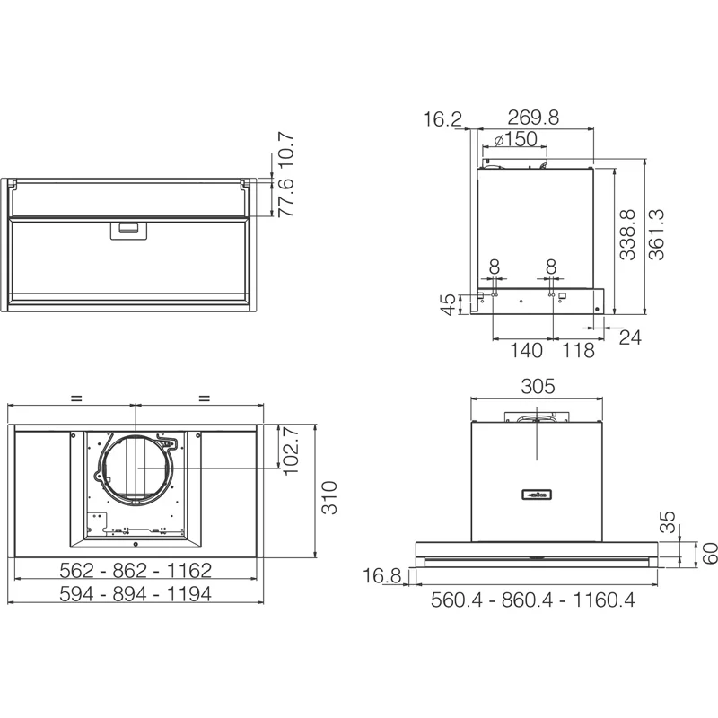 Встраиваемая вытяжка ELICA BOXIN ADVANCE IX/A/120-PRF0182703A монтируется в подвесной шкаф. Модель произведена из нержавеющей стали. В комплекте поставляется алюминиевый жироулавливающий фильтр, который снимается для мытья в посудомоечной машине.