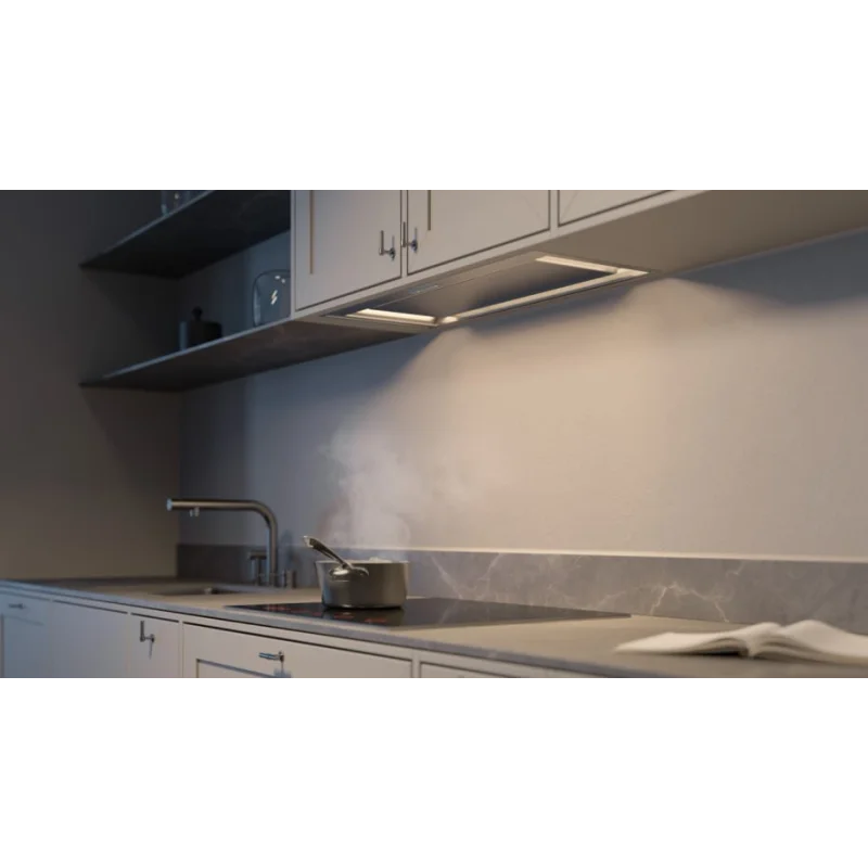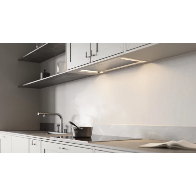 Имеет 5 уровней мощности и режим Boost для интенсивного удаления пара и запахов. Технология периметрического всасывания захватывает воздух по краям панели, повышая эффективность улавливания испарений и снижая уровень шума.