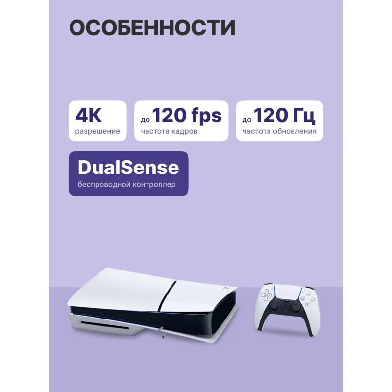 Консоль раскрывает свой потенциал благодаря революционному контроллеру DualSense, который предлагает адаптивные триггеры и тактильную отдачу, передавая тончайшие физические ощущения от игрового процесса. Поддержка формата 4K с частотой до 120 кадров в секунду и технологий HDR обеспечивает кристально четкую и плавную картинку. Температурная система охлаждения гарантирует стабильную и тихую работу даже в самых требовательных проектах.