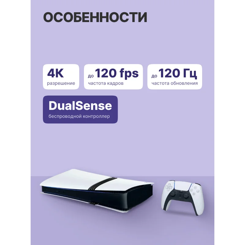 Сверхбыстрый SSD-накопитель загружает игры за секунды, а переходы между мирами происходят без единой задержки. Технологии контроллера DualSense раскрываются полностью: адаптивные триггеры создают физическое сопротивление, тактильная отдача передаёт мельчайшие вибрации, а 3D-звук погружает в самую гущу событий. Всё это вместе даёт эффект присутствия, который невозможно получить на других платформах.