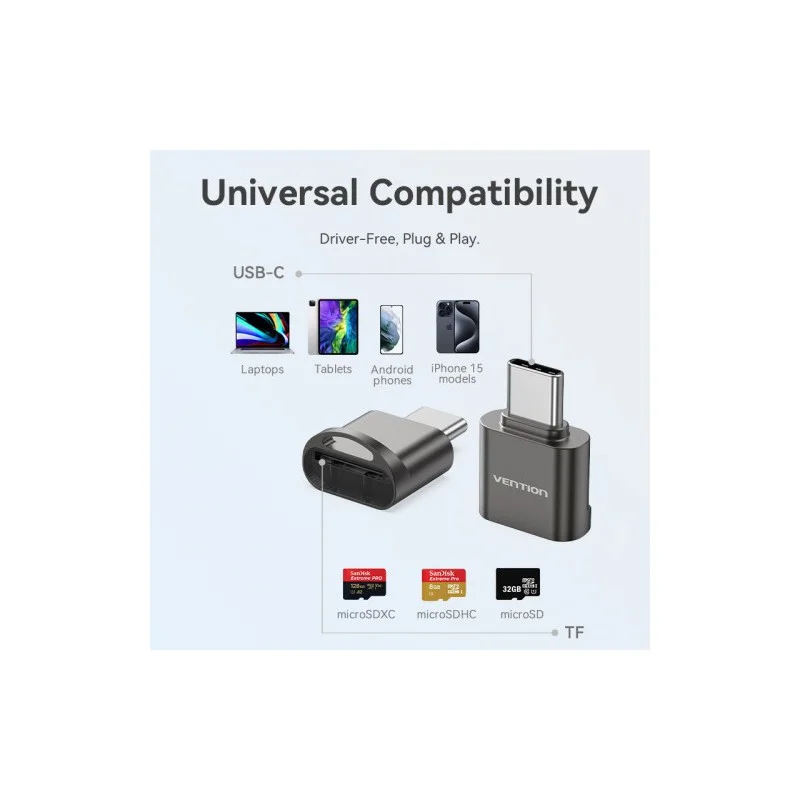 OTG картридер Vention CLMH0 предназначен для считывания и передачи данных с карт памяти на оборудование с разъемом USB. Незаменим при подключении карт памяти к ноутбуку, компьютеру или прочему оборудованию.