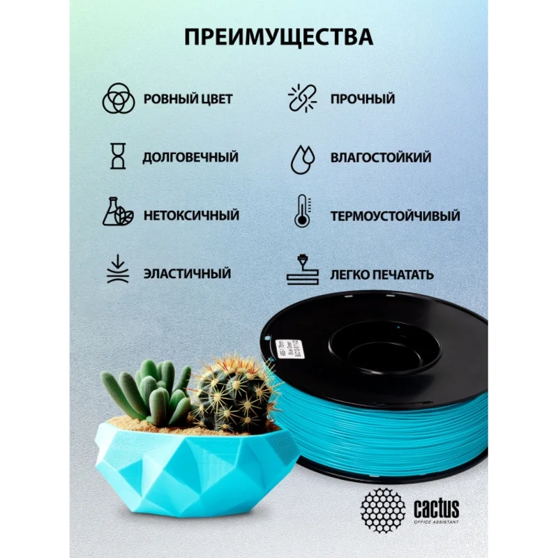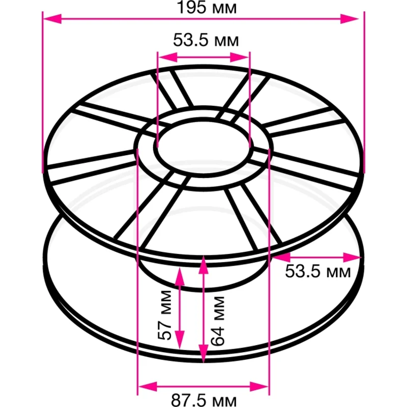 Посадочный размер катушки - 57 мм Внутренний диаметр катушки - 53,5 мм Внешний диаметр катушки - 195 мм Температура печати - 220-260 °С Температура размягчения - 98 °С Температура платформы - 80-110 °С Скорость плавления - 12-19г/10мин (220 °С) Точность - ±0,03 мм Плотность - 1,04 г/см3 Удлинение при разрыве - 25% Сила растяжения - 6-10 KGF Влагопоглощение - 0,01% Усадка - 0,80% Твердость по Шору - D68