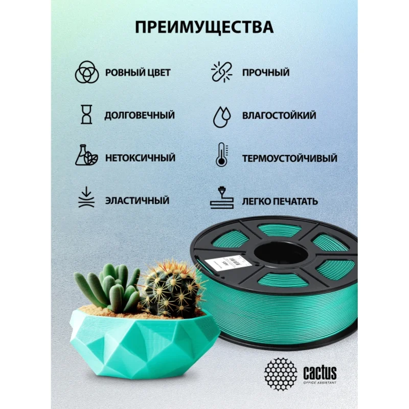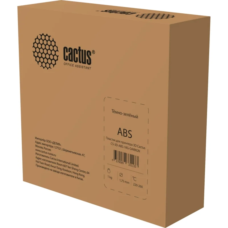 Цвет 1: темно-зеленый Посадочный размер катушки - 57 мм Внутренний диаметр катушки - 53,5 мм Внешний диаметр катушки - 195 мм Температура печати - 220-260 °С Температура размягчения - 98 °С Температура платформы - 80-110 °С Скорость плавления - 12-19г/10мин (220 °С) Точность - ±0,03 мм Плотность - 1,04 г/см3 Удлинение при разрыве - 25% Сила растяжения - 6-10 KGF Влагопоглощение - 0,01% Усадка - 0,80% Твердость по Шору - D68