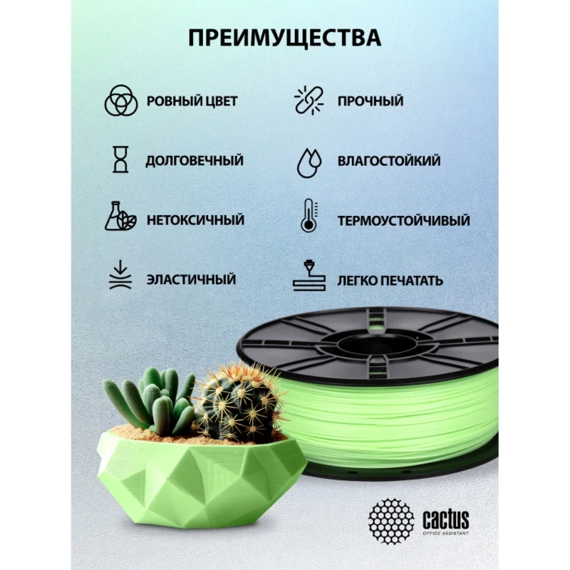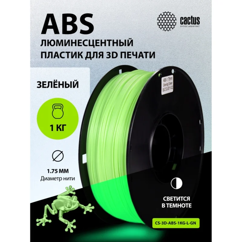 Цвет 1: зеленый люминесцентный Посадочный размер катушки - 57 мм Внутренний диаметр катушки - 53,5 мм Внешний диаметр катушки - 195 мм Температура печати - 220-260 °С Температура размягчения - 98 °С Температура платформы - 80-110 °С Скорость плавления - 12-19г/10мин (220 °С) Точность - ±0,03 мм Плотность - 1,04 г/см3 Удлинение при разрыве - 25% Сила растяжения - 6-10 KGF Влагопоглощение - 0,01% Усадка - 0,80% Твердость по Шору - D68