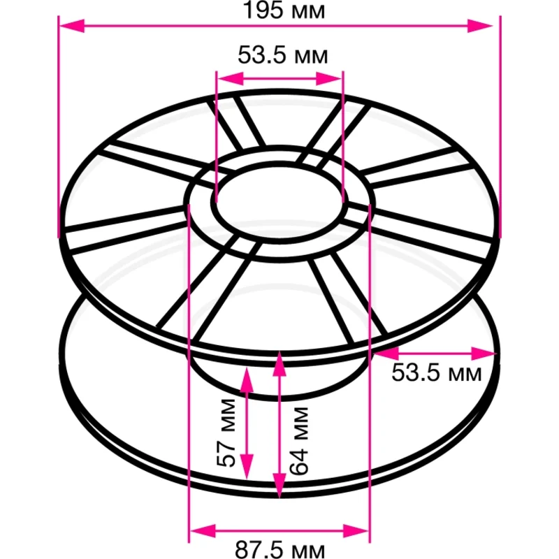 Посадочный размер катушки - 57 мм Внутренний диаметр катушки - 53,5 мм Внешний диаметр катушки - 195 мм Температура печати - 220-260 °С Температура размягчения - 98 °С Температура платформы - 80-110 °С Скорость плавления - 12-19г/10мин (220 °С) Точность - ±0,03 мм Плотность - 1,04 г/см3 Удлинение при разрыве - 25% Сила растяжения - 6-10 KGF Влагопоглощение - 0,01% Усадка - 0,80% Твердость по Шору - D68