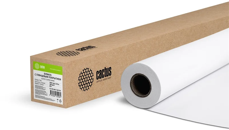 Бумага Cactus CS-PG180-106730 42"(A0+) 1067мм-30м/180г/м2/белый глянцевое универсальная (с покрытием)