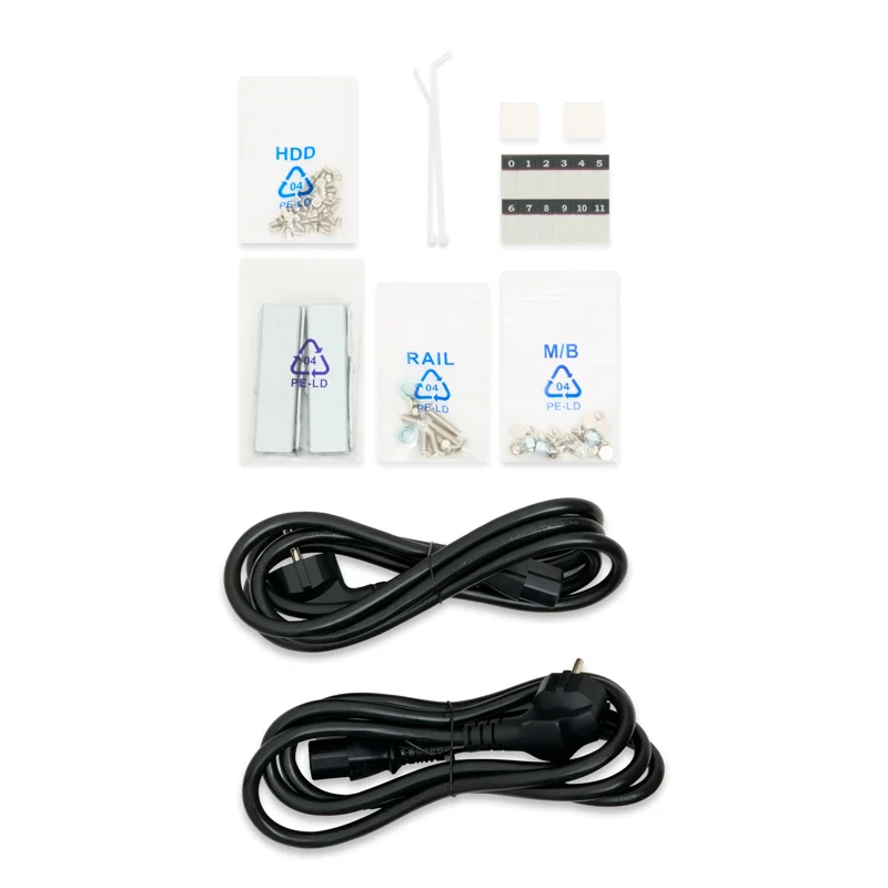 Корпус оснащён 12 сменными лотками для 3,5-дюймовых жестких дисков спереди и 2 сменными лотками для 2,5-дюймовых накопителей сзади. Такая конфигурация обеспечивает гибкость и удобство в организации хранилища. На передней панели расположены 2 порта USB 3.0, обеспечивающие быстрый доступ для подключения периферийных устройств и обмена данными.