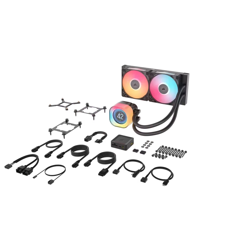Одной из уникальных особенностей этой системы является встроенный LCD-дисплей, который позволяет отображать различные данные, такие как температура процессора, скорость вращения вентиляторов и другие параметры. Кроме того, система оснащена RGB-подсветкой, которую можно настроить через программное обеспечение iCUE, добавляя индивидуальности и стиля вашему ПК.