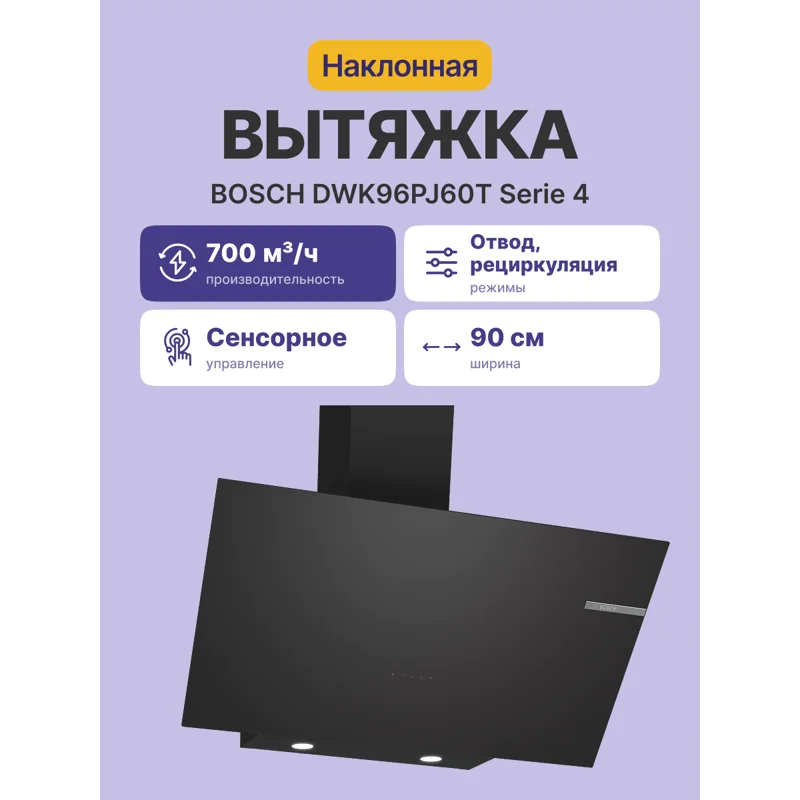 Bosch DWK96PJ60T — это премиальная наклонная вытяжка, сочетающая в себе высокую производительность, элегантный дизайн и удобное управление. Благодаря мощному мотору и современным технологиям, она эффективно устраняет запахи, пар и жир, создавая чистую и свежую атмосферу на кухне.