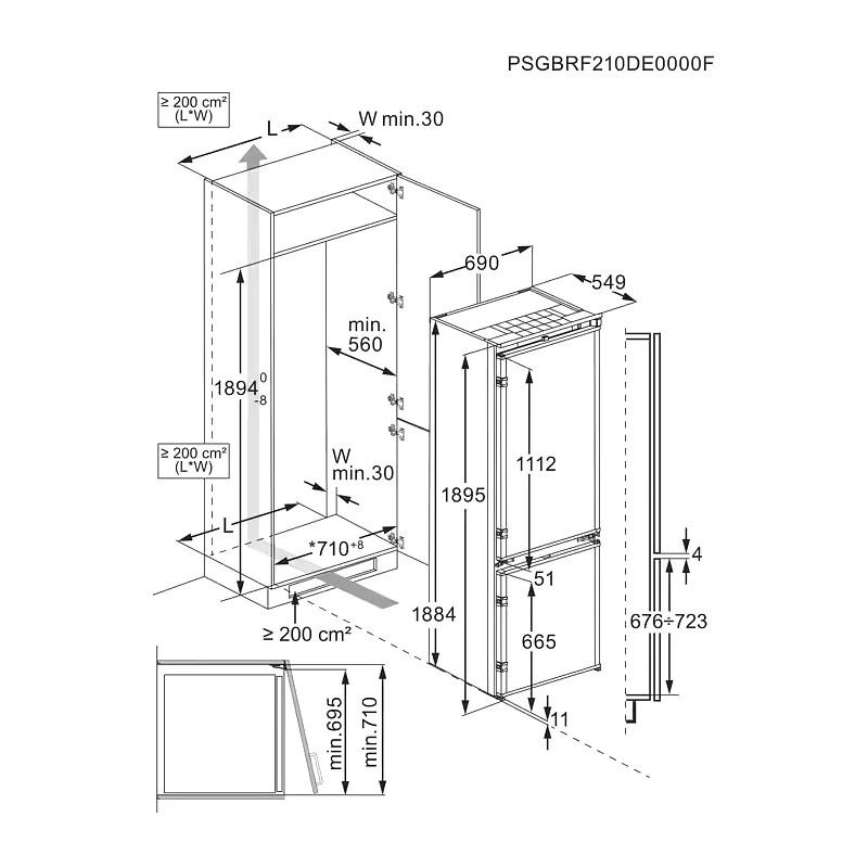 Габариты 1884x696x549 мм делают холодильник идеальным для встраивания в стандартные кухонные гарнитуры, экономя пространство и сохраняя стильный вид кухни.