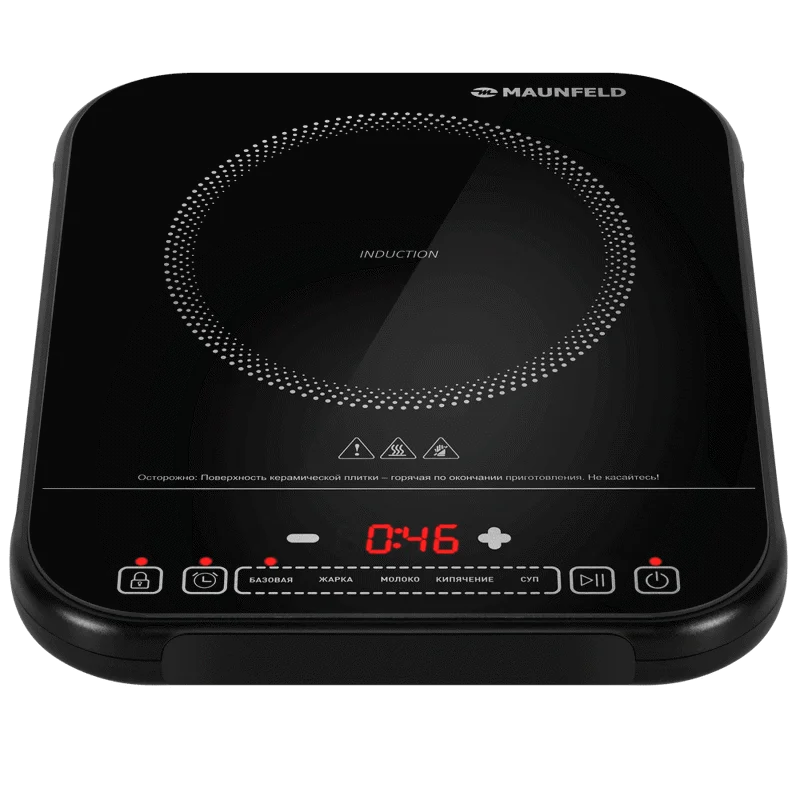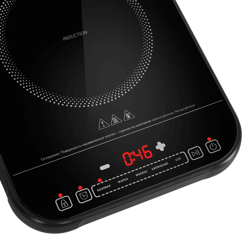 Настольная индукционная плитка со стеклокерамической варочной панелью и индукционной конфоркой быстрого нагрева. Компактные размеры и небольшой вес позволяют легко переносить плитку и брать с собой на дачу. При отсутствии посуды на плитке происходит ее автоотключение, что значительно снижает вероятность возникновения пожара.