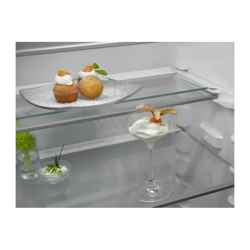 Как встраиваемая модель с креплением дверцы на направляющих, холодильник идеально и ровно встраивается в мебельный гарнитур. Дверца крепится к фасаду кухни, открываясь плавно и обеспечивая элегантный, единый вид кухонного пространства.