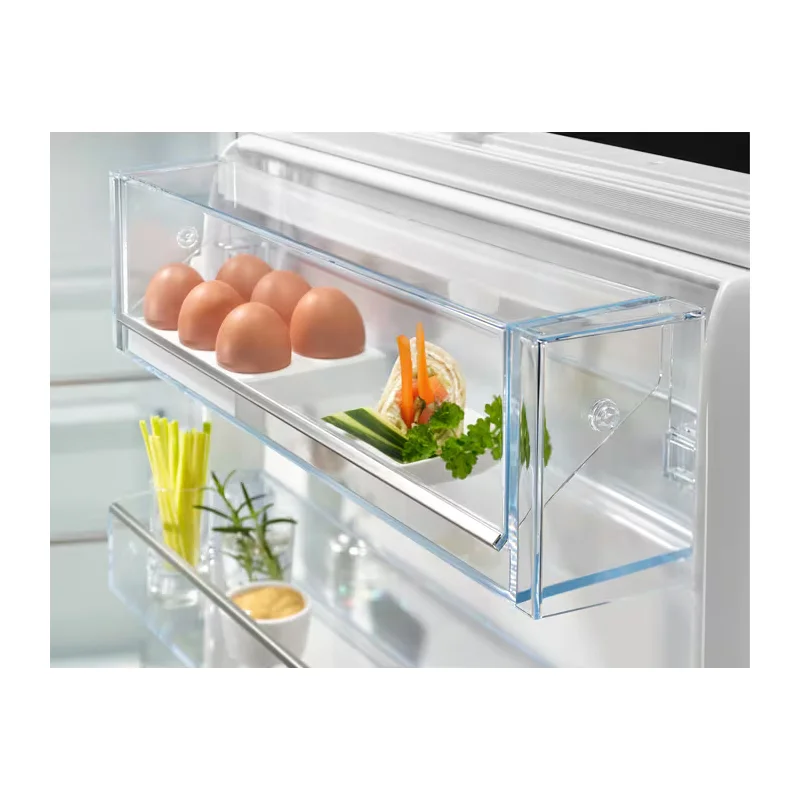 Это современный встраиваемый комбинированный холодильник с верхним расположением морозильной камеры. Он сочетает в себе передовые технологии для обеспечения эффективного хранения продуктов, удобства управления и значительной экономии энергии. Благодаря системе No Frost в обеих камерах и интеллектуальным функциям организации пространства, этот холодильник создан для комфортного использования в повседневной жизни.