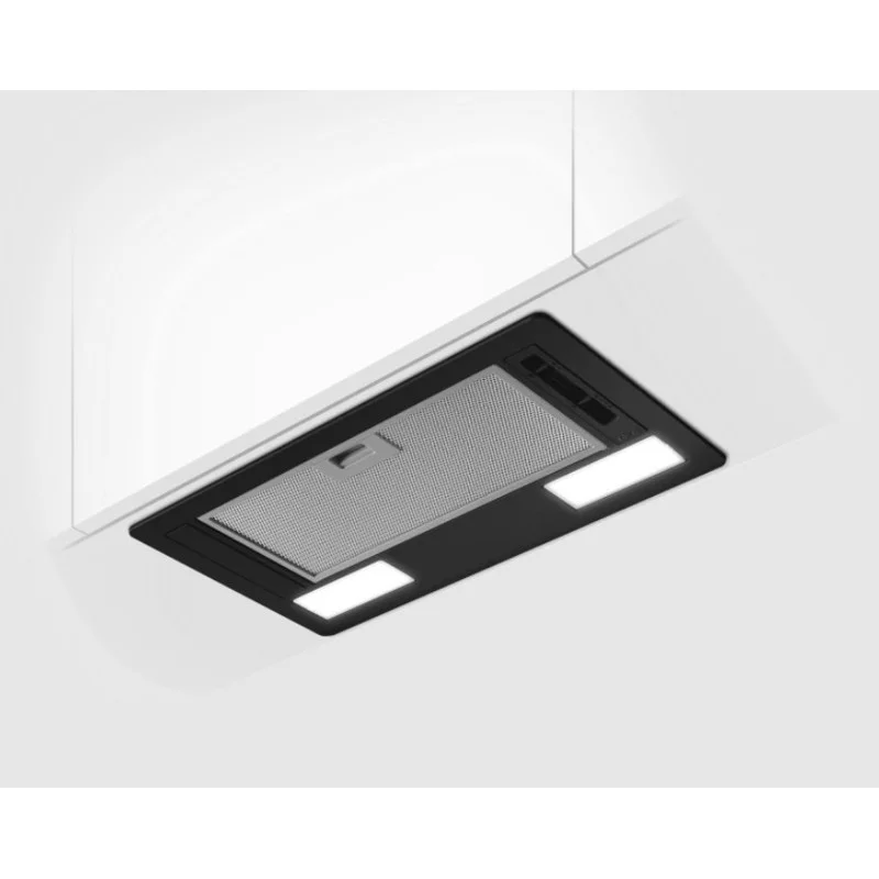Чёрный цвет корпуса и минималистичный дизайн делают вытяжку стильным элементом кухни, который легко вписывается в любой интерьер — от классики до хай-тека. Электронное управление сенсорными кнопками упрощает настройку и делает использование интуитивно понятным. LED-подсветка не только функциональна, но и добавляет современный акцент в общий вид кухни.