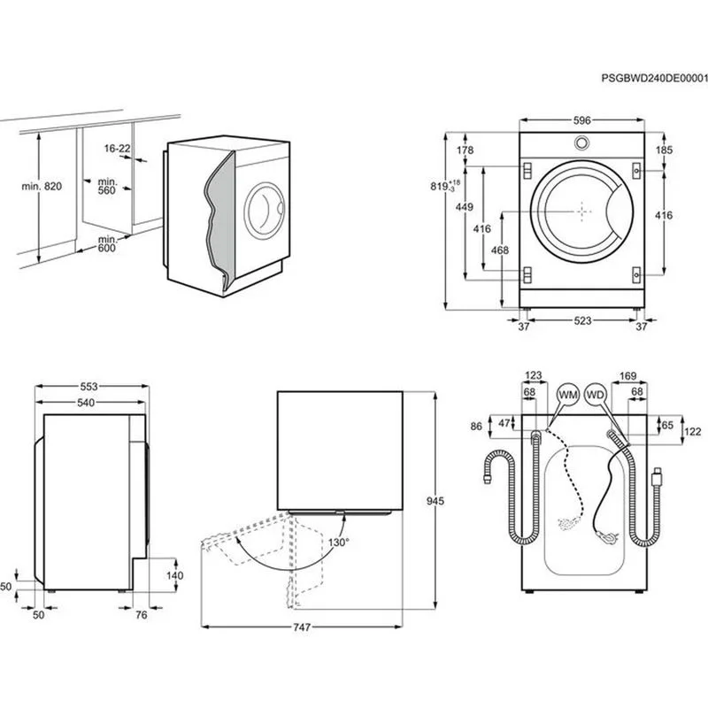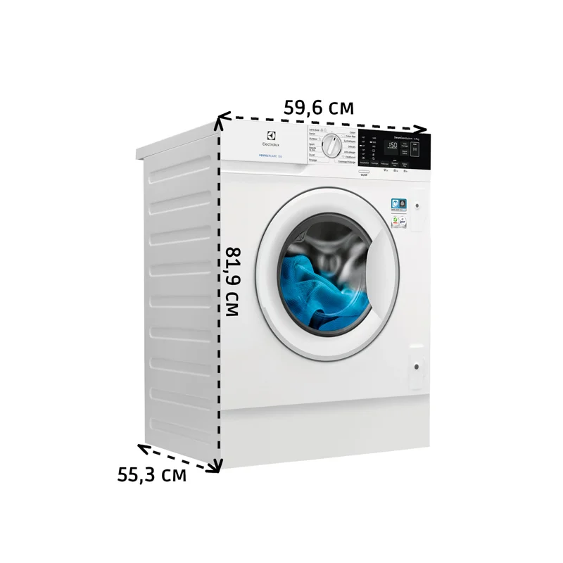 Встраиваемая стиральная машина ELECTROLUX EWN7F447WI оснащена четырьмя регулируемыми ножками — даже при небольших неровностях пола ее ез труда можно будет установить устойчиво. Мощность подключения составляет 2100 Вт, длина сетевого шнура — 1,62 м, подающего шланга — 1,5 м, сливного — 1,45 м. Размеры прибора: 819x596x540 мм.