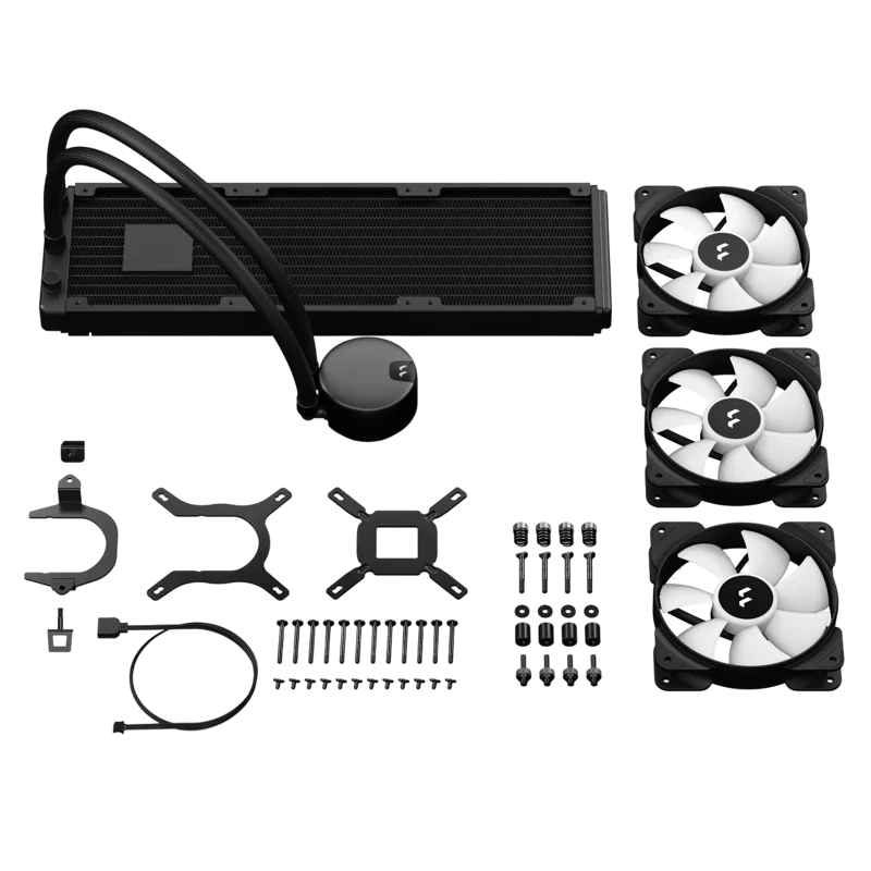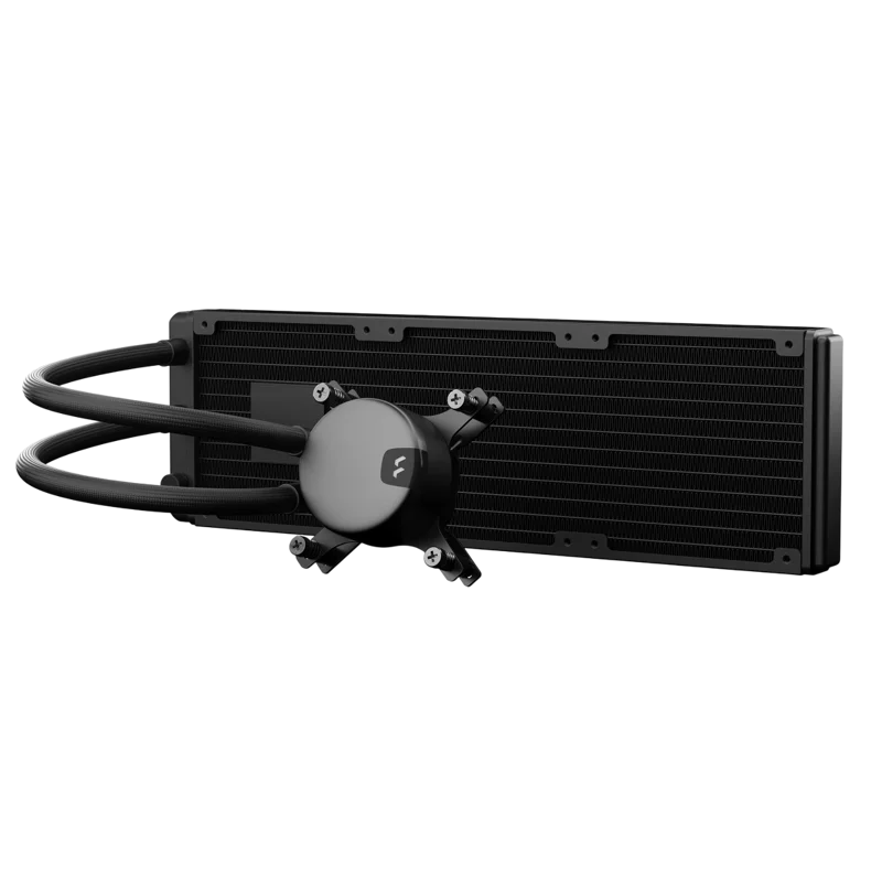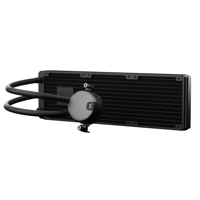Важнейшая часть — это тихий и эффективный насос. Он работает почти бесшумно (всего 22 дБА) на высокой скорости до 4000 оборотов в минуту. Его высота 67 мм позволяет установить систему даже в корпусах с ограниченным пространством. Тепло рассеивается через большой 360-миллиметровый алюминиевый радиатор толщиной 27 мм. На нём установлены три 120-миллиметровых вентилятора. Каждый из них создаёт поток воздуха 56 CFM, вращаясь со скоростью до 2000 оборотов. Уровень шума при этом остаётся умеренным — 33.2 дБА.