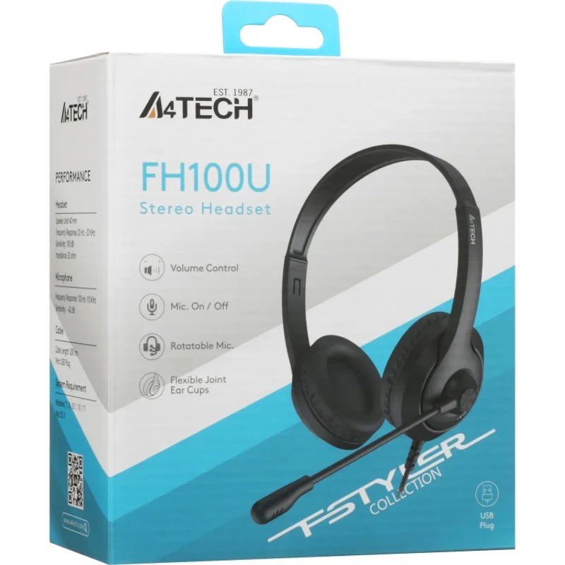 Стереогарнитура A4Tech Fstyler FH100U. Мягкие амбушюры удобно прилегают к уху, обеспечивая высокое качество звука, как будто вы находитесь в своем собственном мире. 40 мм динамики - точное воспроизведение звука и комфортное прослушивание в течение нескольких часов. Регулируемое оголовье обеспечивает оптимальную посадку и комфорт использования. Поворотный однонаправленный микрофон уменьшает нежелательный фоновый шум и делает разговор четким. Удобный контроллер - удобное управление громкостью и отключение микрофона.